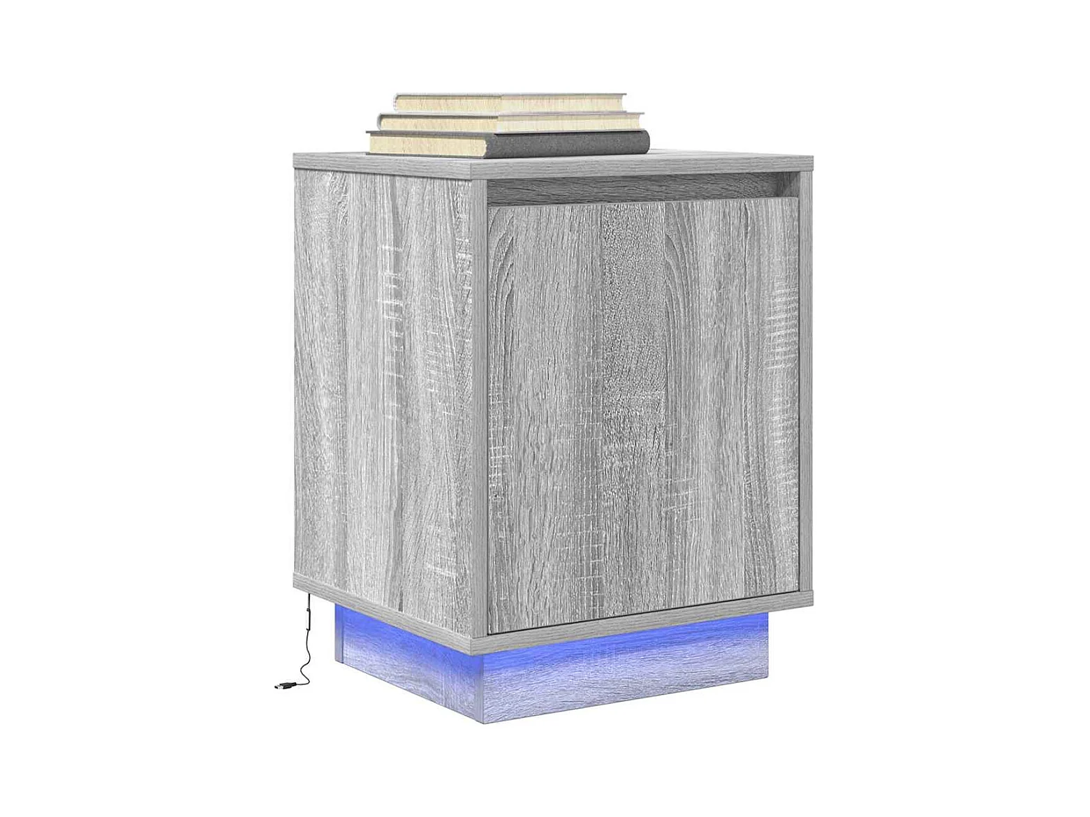 Comodino in legno ingegnerizzato grigio cemento e luci a LED