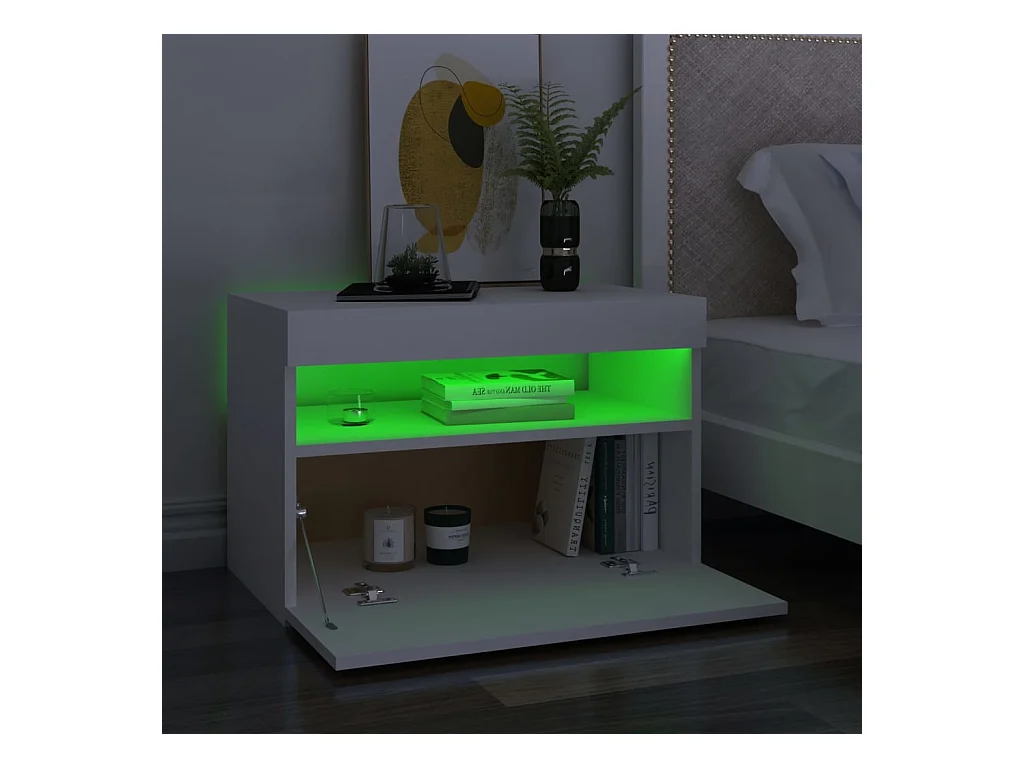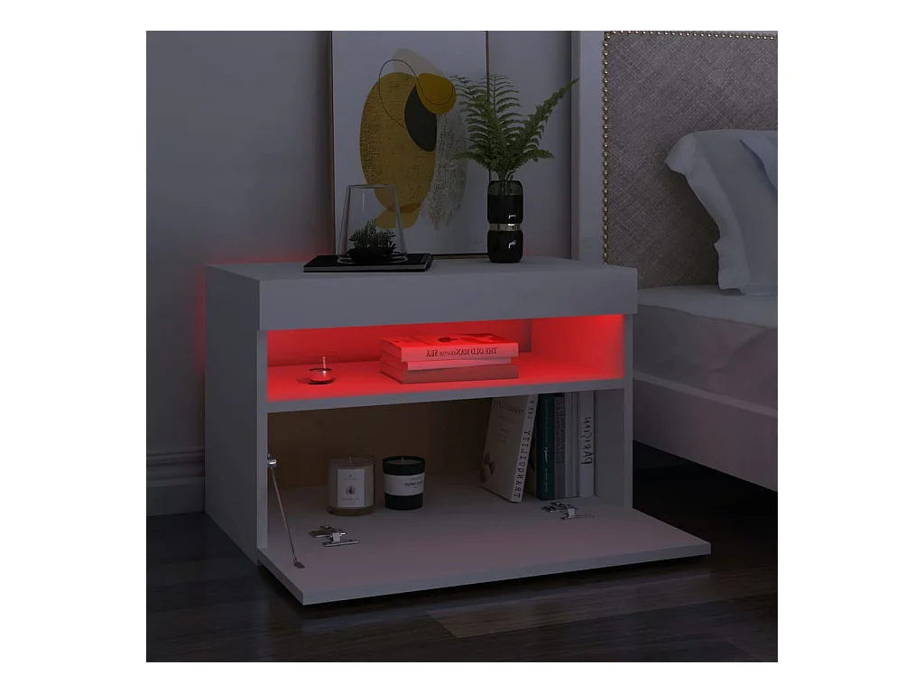 Comodini con luci LED 2 pz bianchi 60x35x40 cm