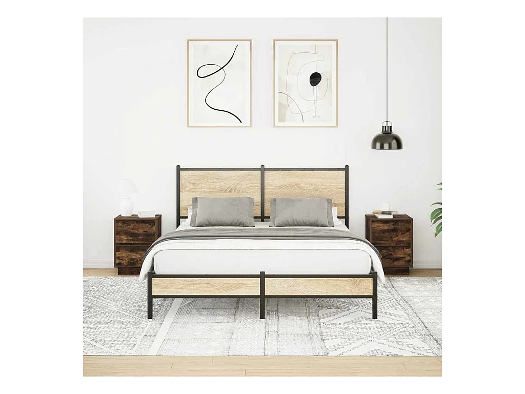 Comodino a 2 pezzi e luci a LED, rovere Sonoma