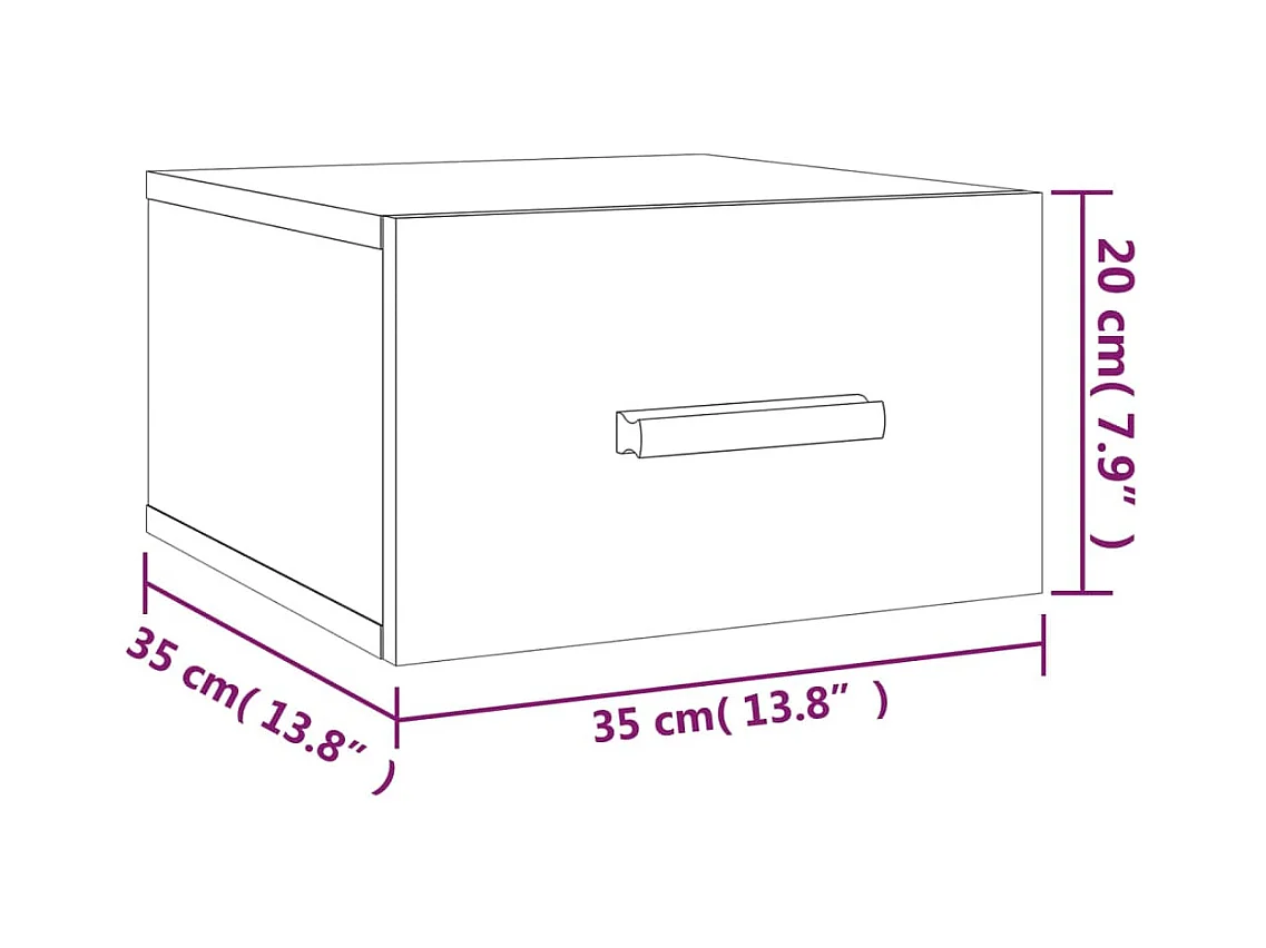 Comodino da parete in rovere affumicato 35x35x20 cm