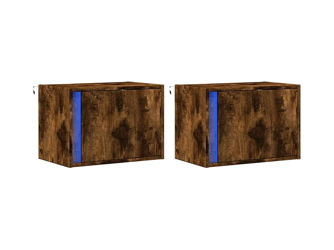 Comodini da parete con luci LED 2 pezzi rovere affumicato