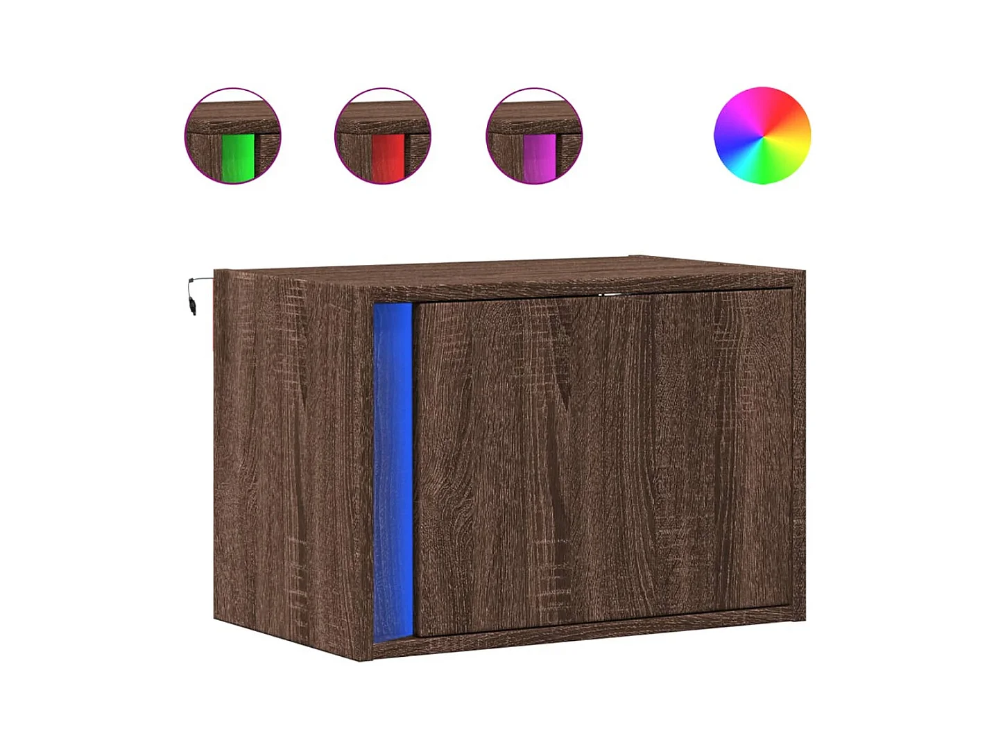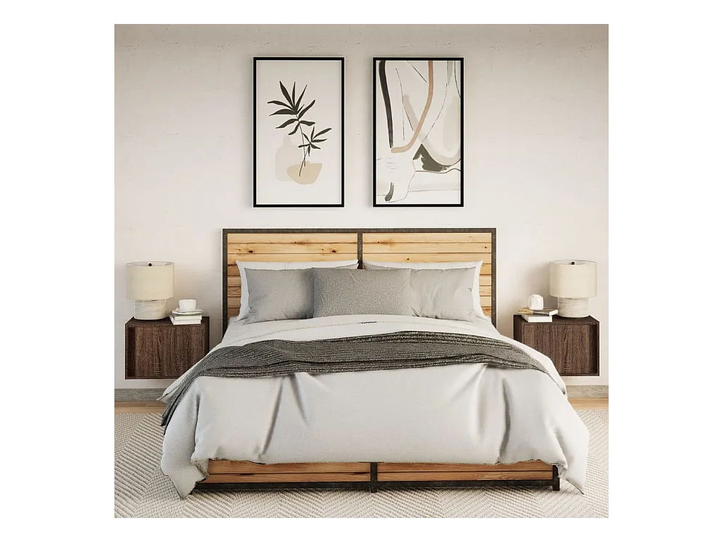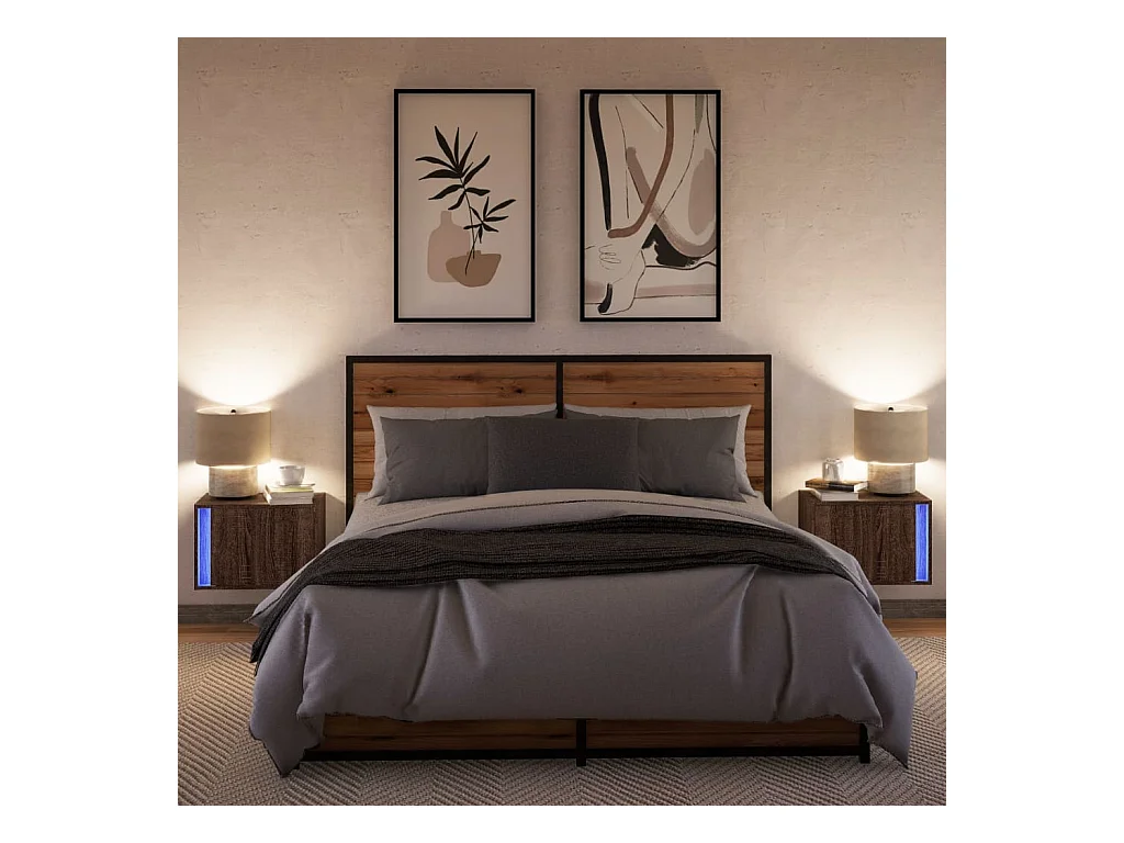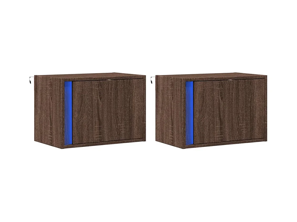 Comodini da parete con luci LED 2 pezzi rovere marrone