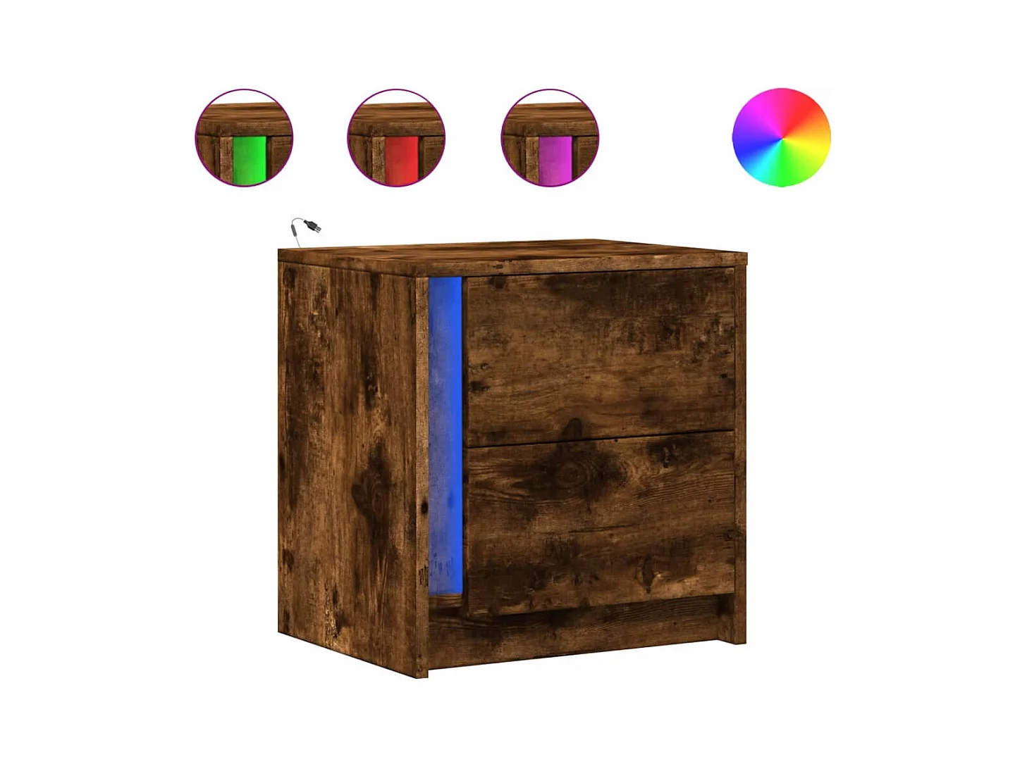 Comodini con luci LED 2pz rovere affumicato 38x34x50 cm
