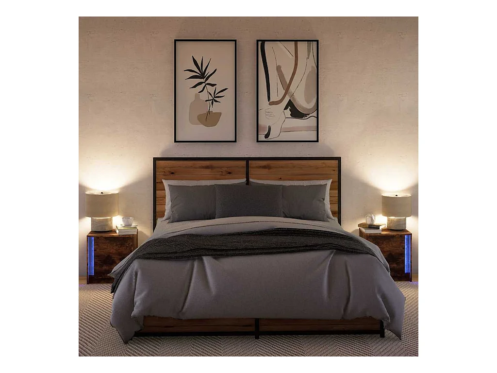 Comodini luci LED 2 pezzi in rovere artigianale 38x34x50cm