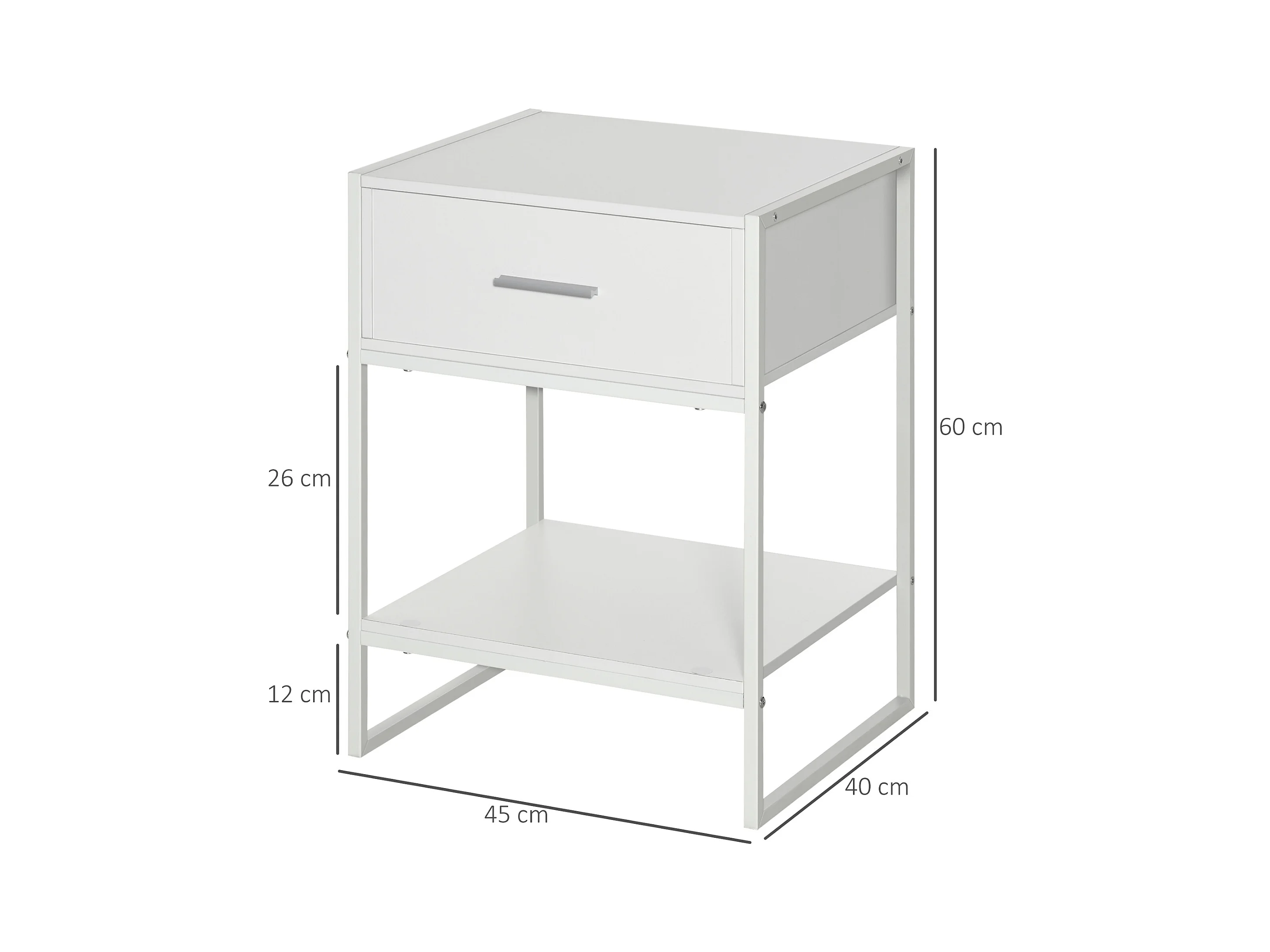 Comodino moderno bianco con un cassetto e 2 ripiani