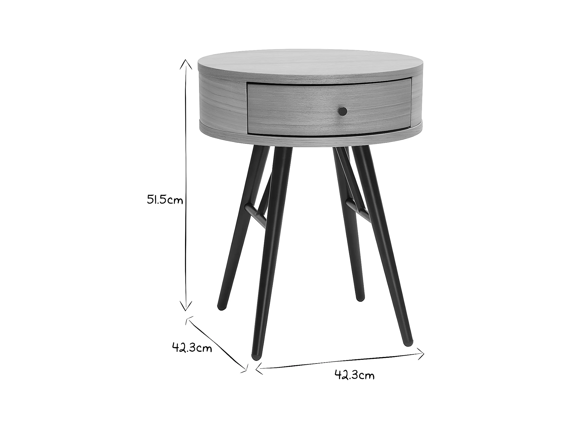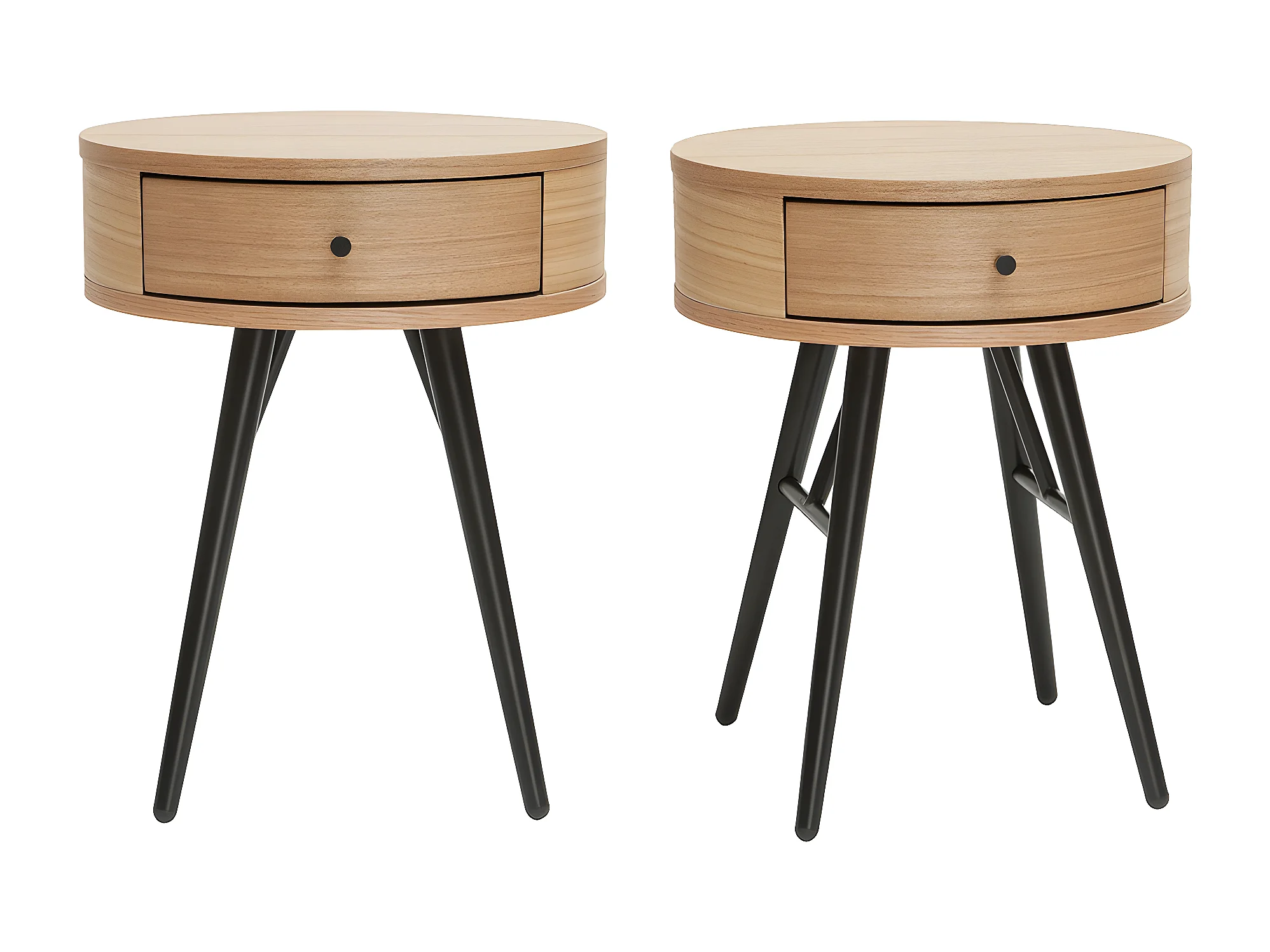 Comodini rotondi con cassetto legno chiaro e metallo nero D41 cm (set di 2) KORAL
