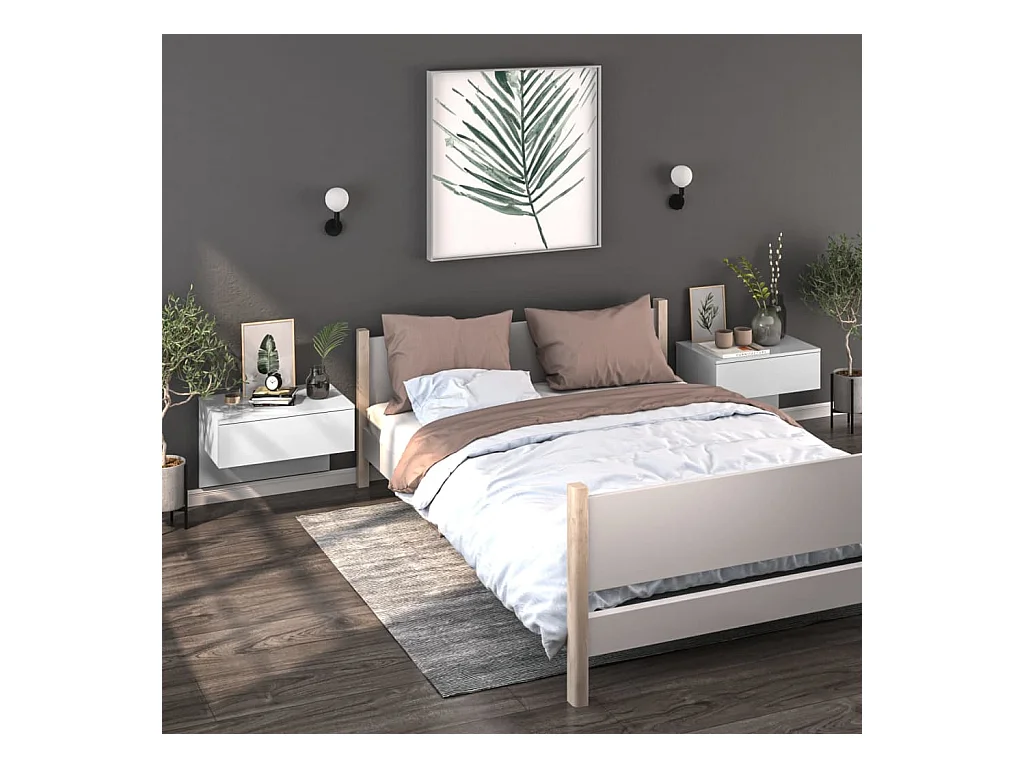 Comodini luci LED 2 pz bianco lucido 60x35x40 cm