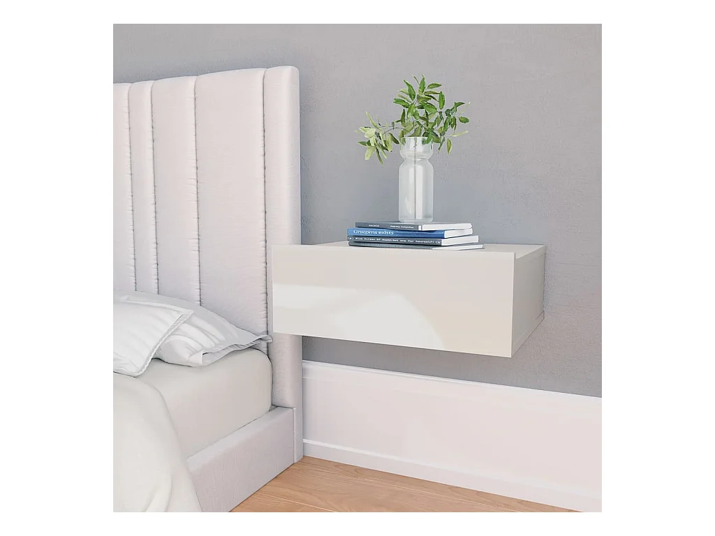 Comodini sospesi 2 pz Bianco lucido 40x30x15 cm