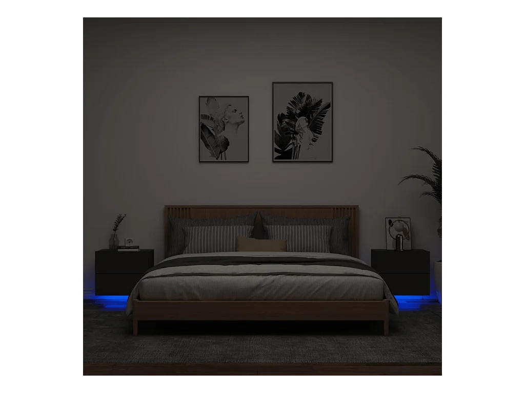 Comodini sospesi con luci LED 2 pz neri