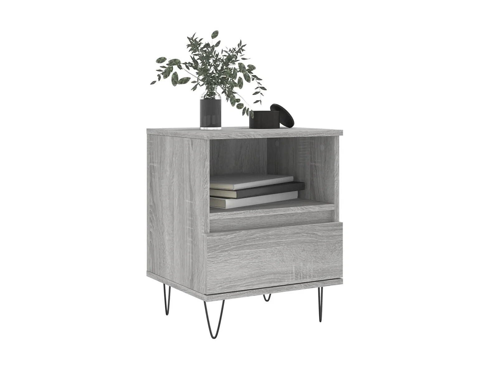 Comodino | Tavolino da notte | Tavolino da letto con Gambe in Metallo Grigio Sonoma 40x30x50 cm