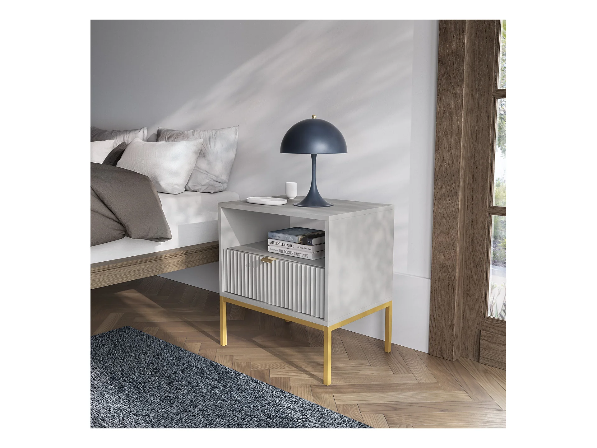 Comodino 1 cassetto con piedi in metallo nero 54x56 cm