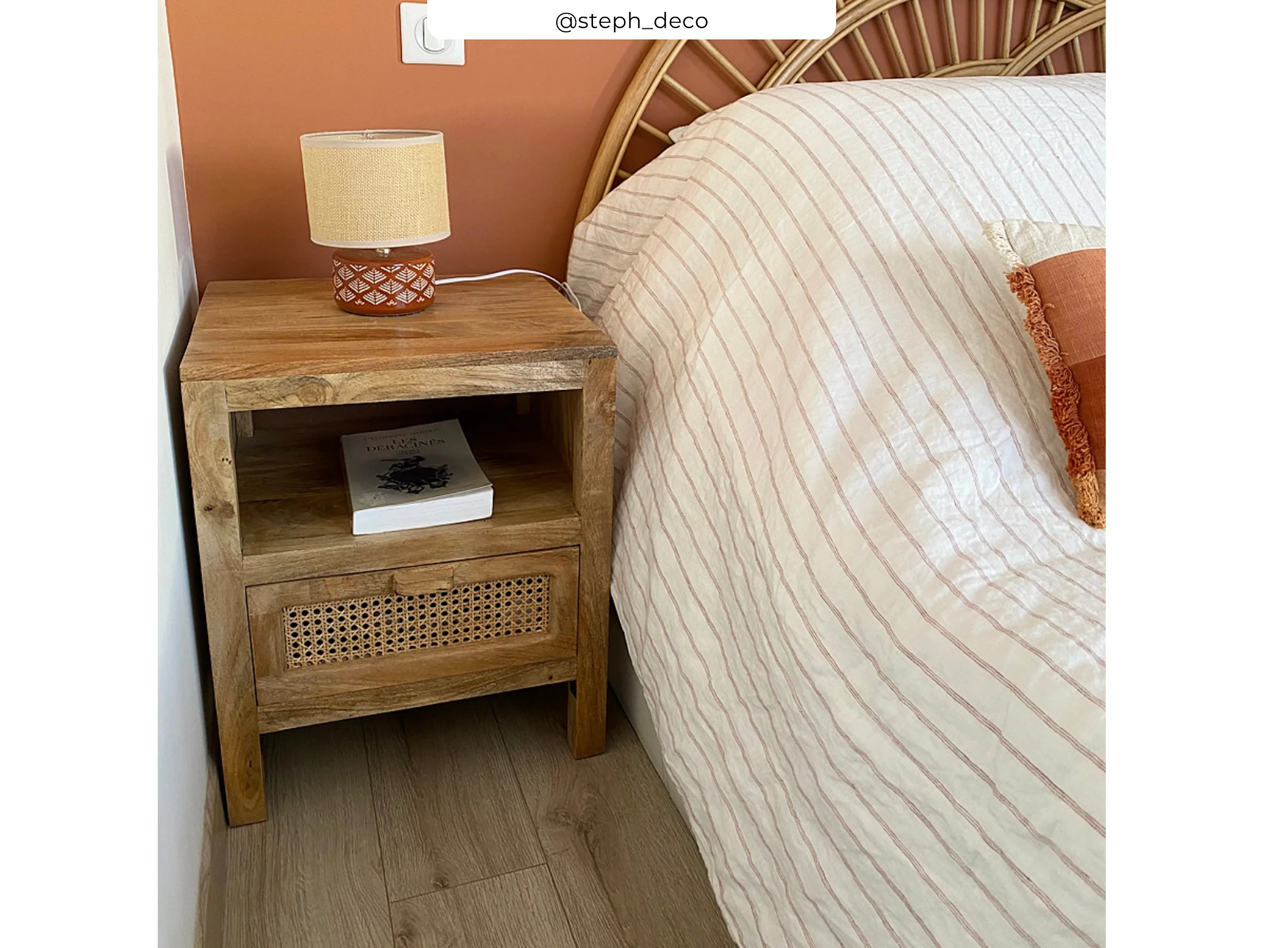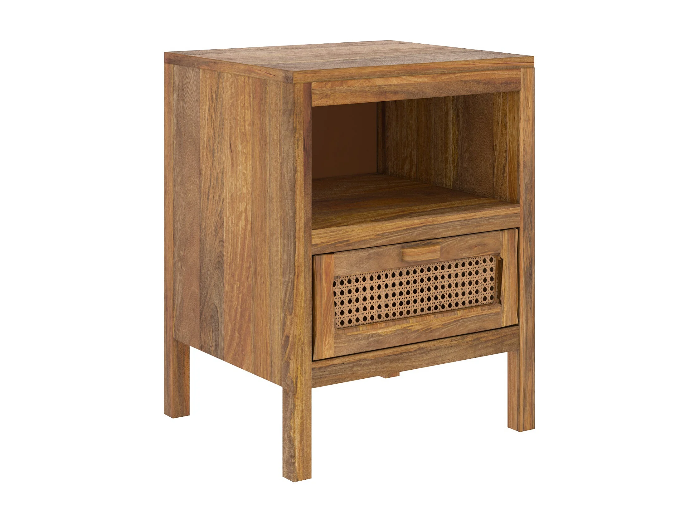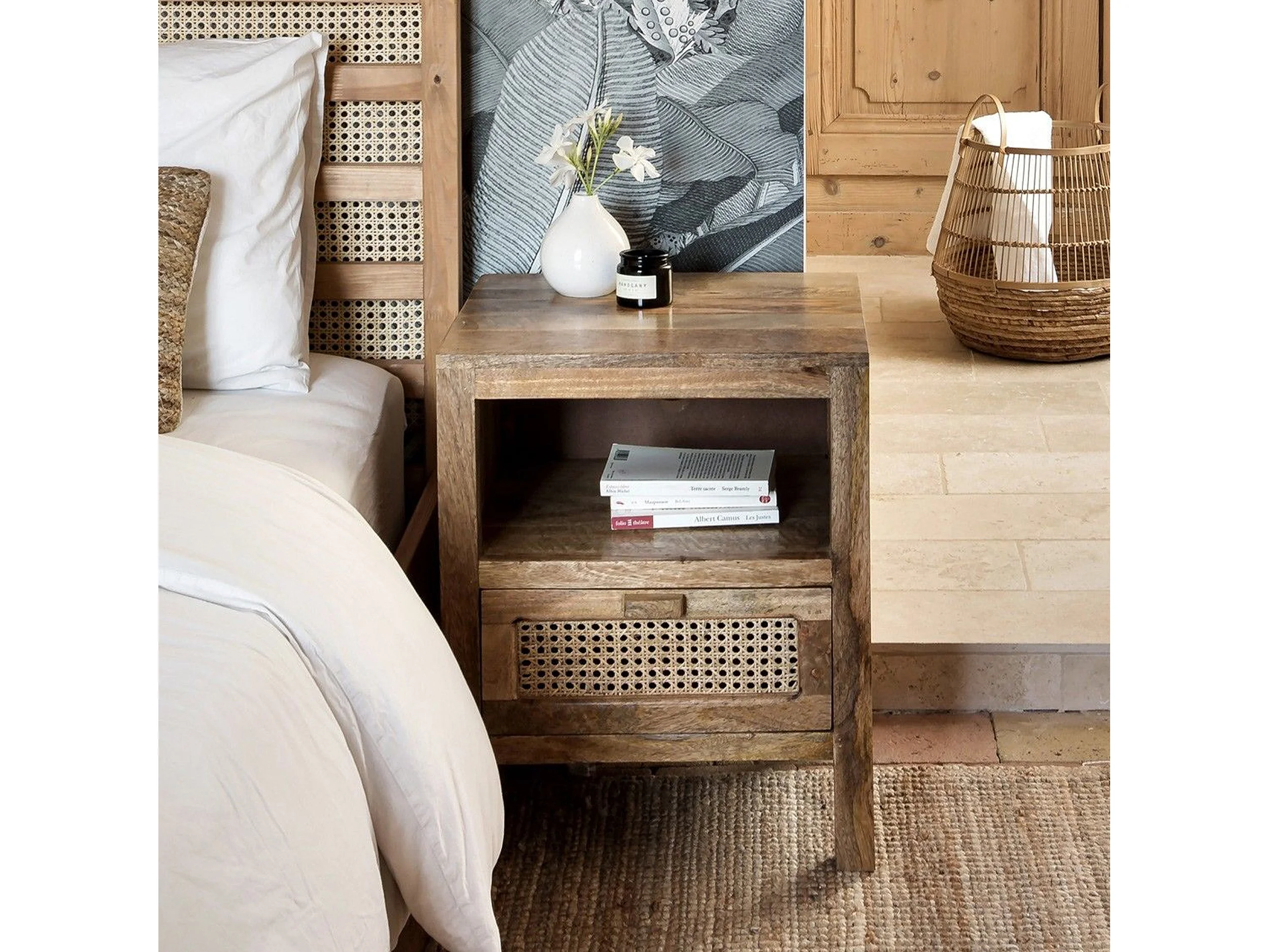 Comodino 1 cassetto e 1 nicchia in legno e canna - Tiki