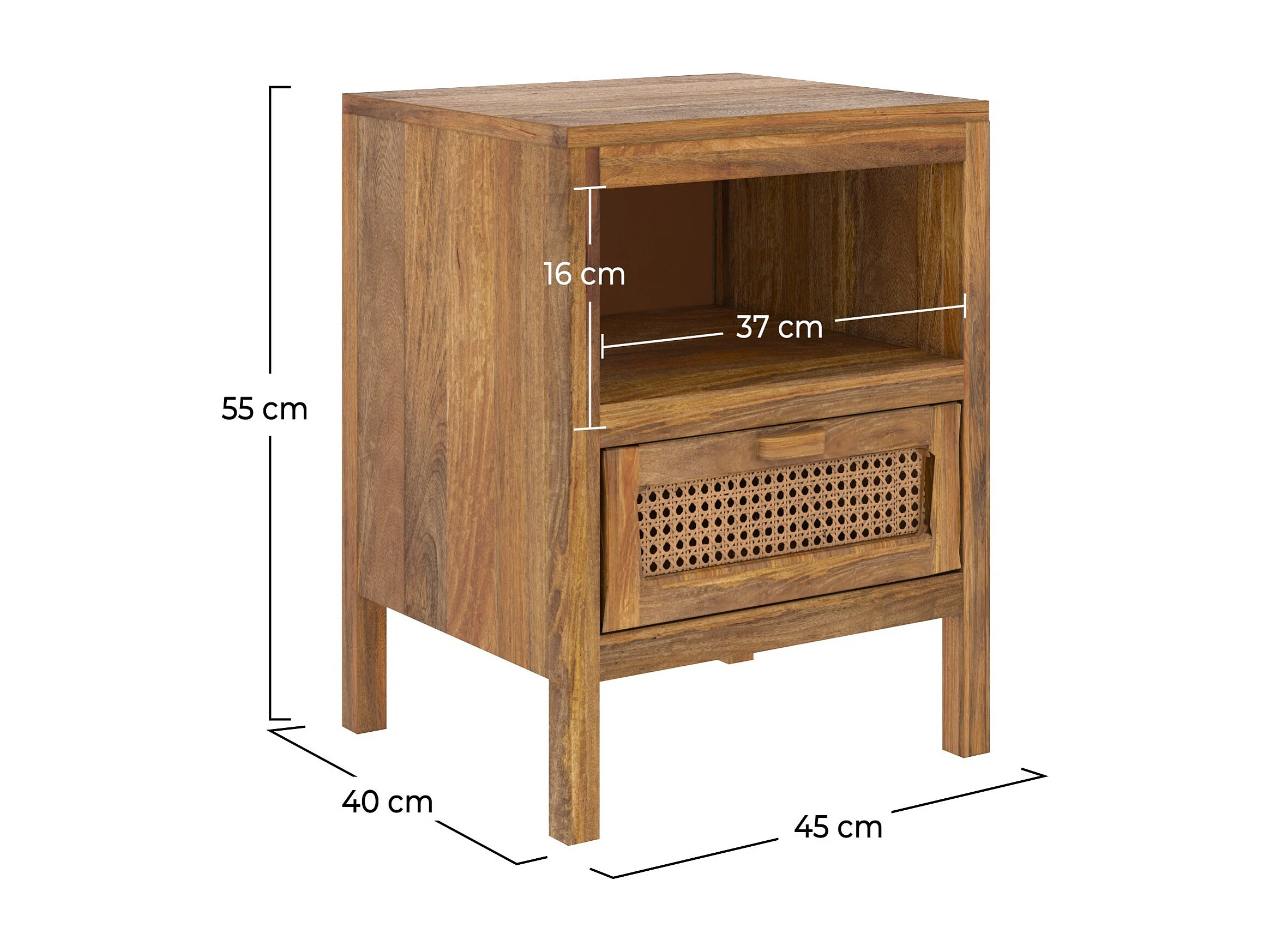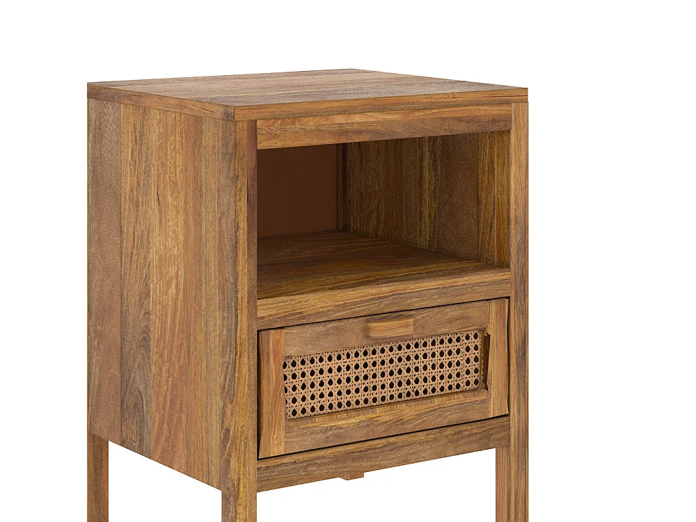 Comodino a 2 cassetti in canna e legno di mango - Cody