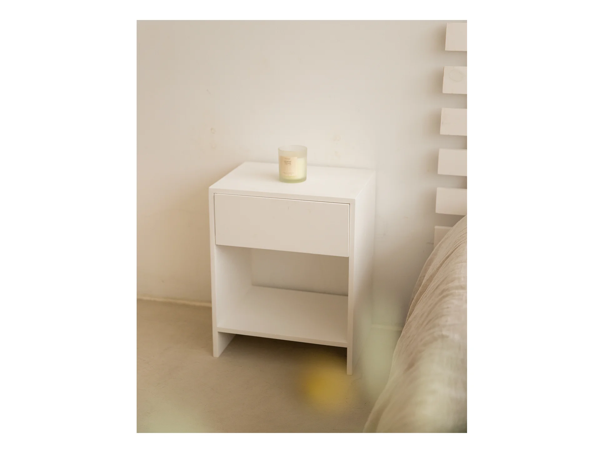 Comodino 1 cassetto in legno massello in tono bianco 40x50cm - MARTINA - DECOWOOD