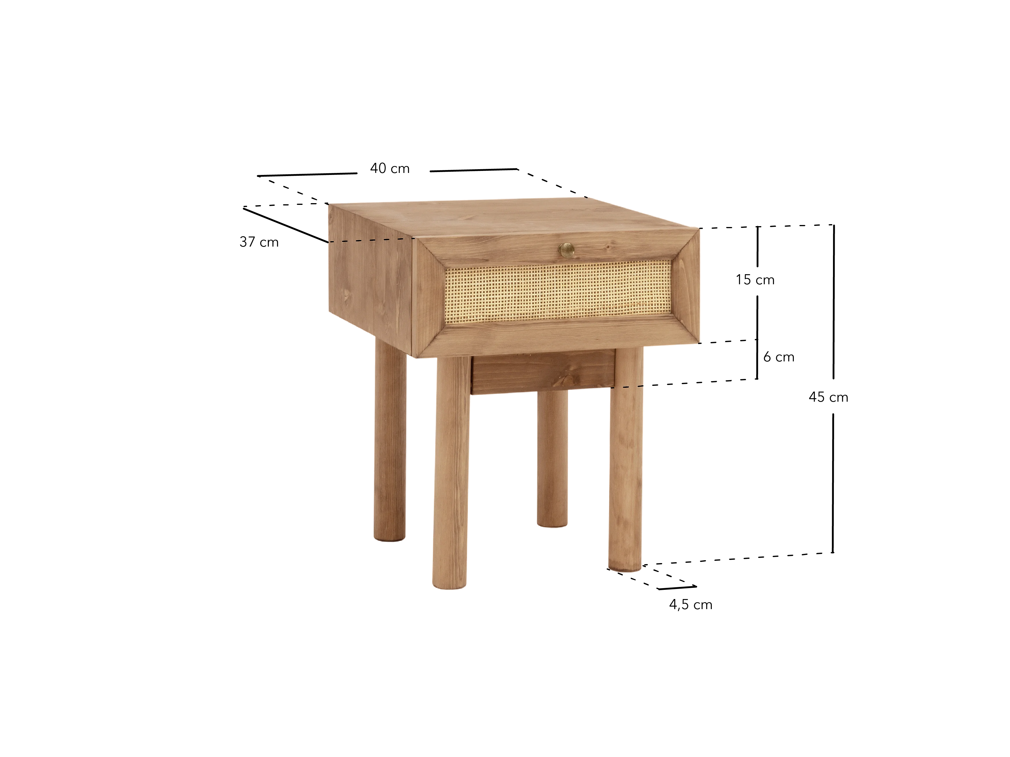 Comodino 1 cassetto in legno massello in tono rovere scuro 40x45cm - FRIDA - DECOWOOD
