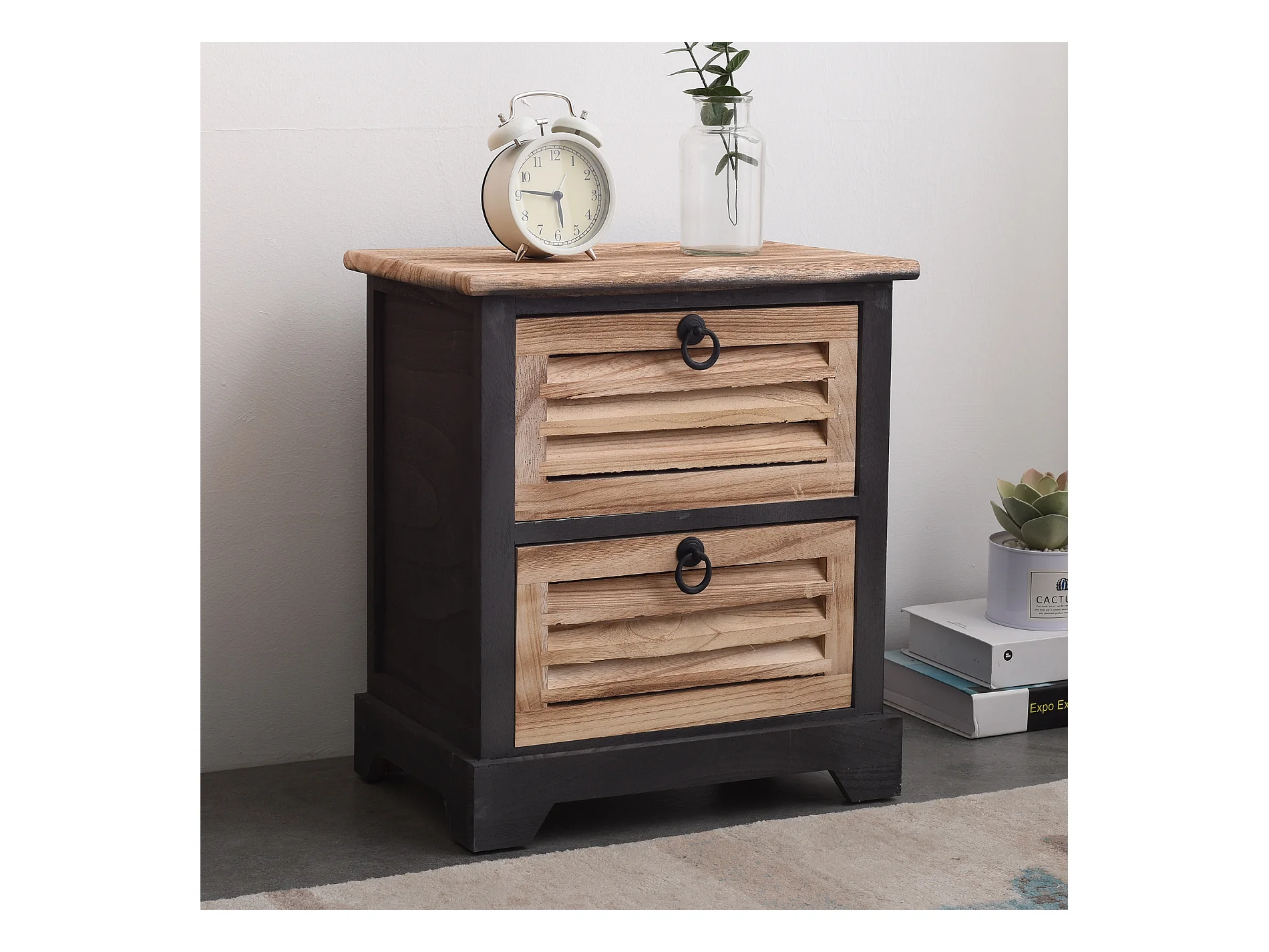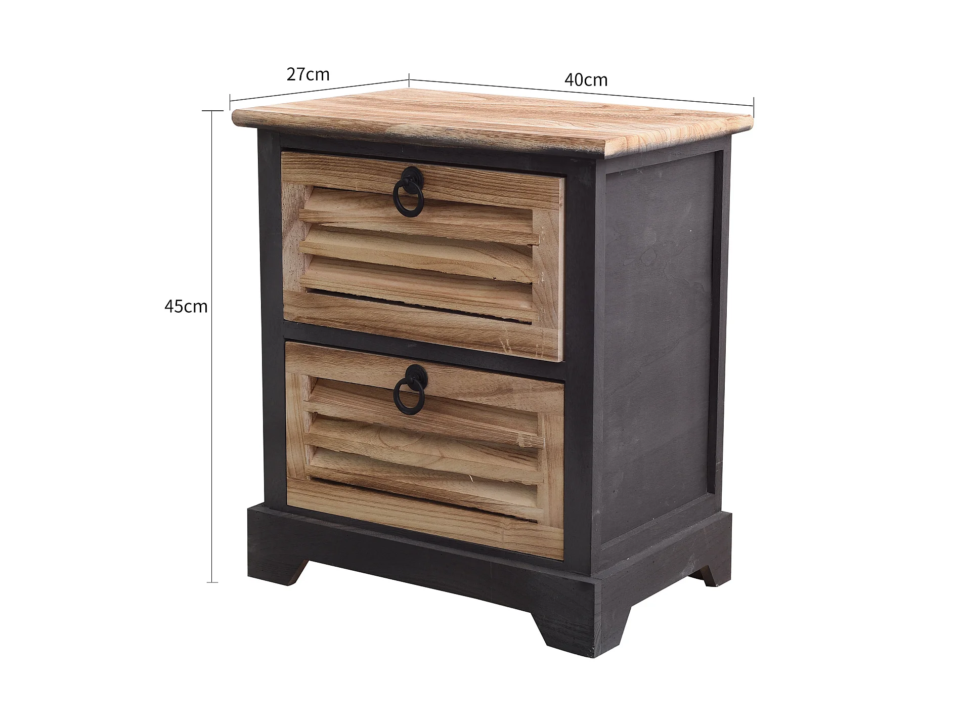 Comodino 2 Cassetti Legno Marrone Naturale Vintage 45x42x29