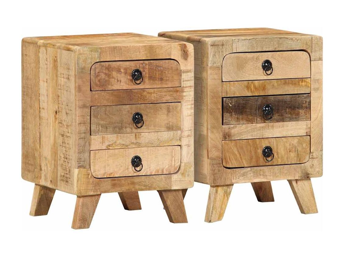 Comodino 2 pezzi 37x32x50 cm in legno massello di mango grezzo
