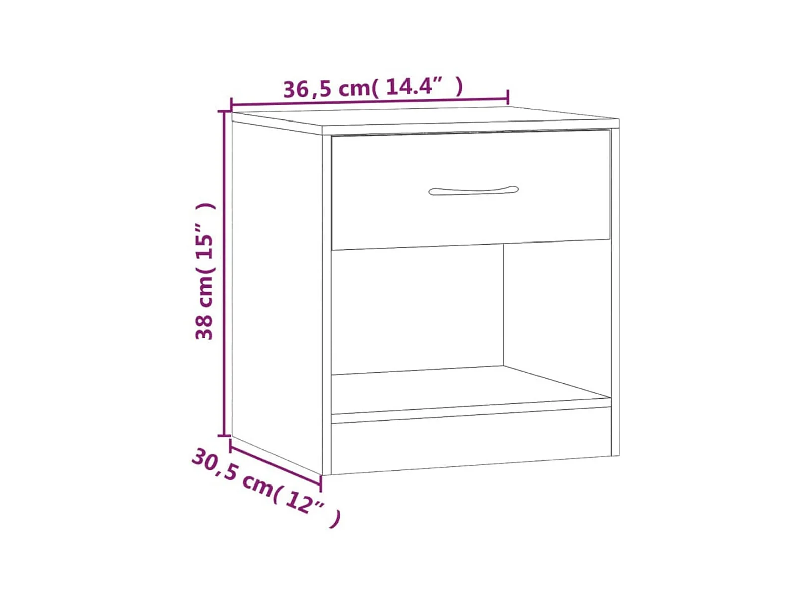 Comodino 2 pezzi con 2 cassetti MDF bianco