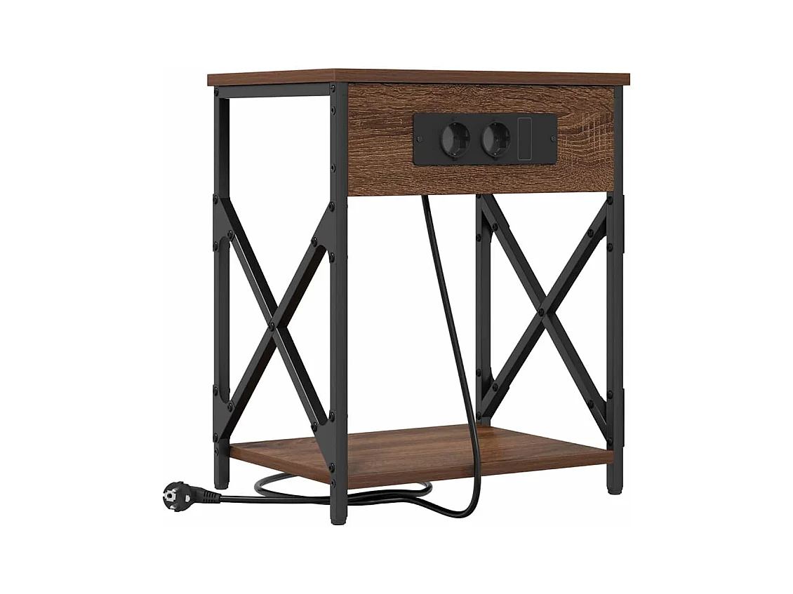 Comodino con stazione di ricarica 2 pezzi Rovere marrone