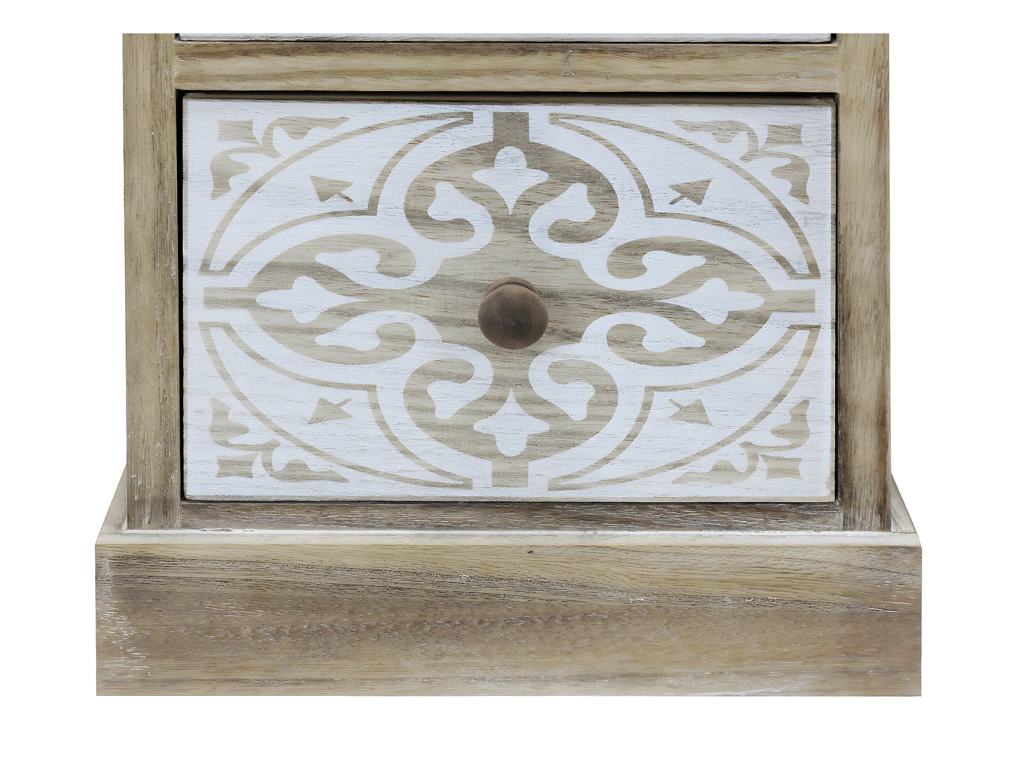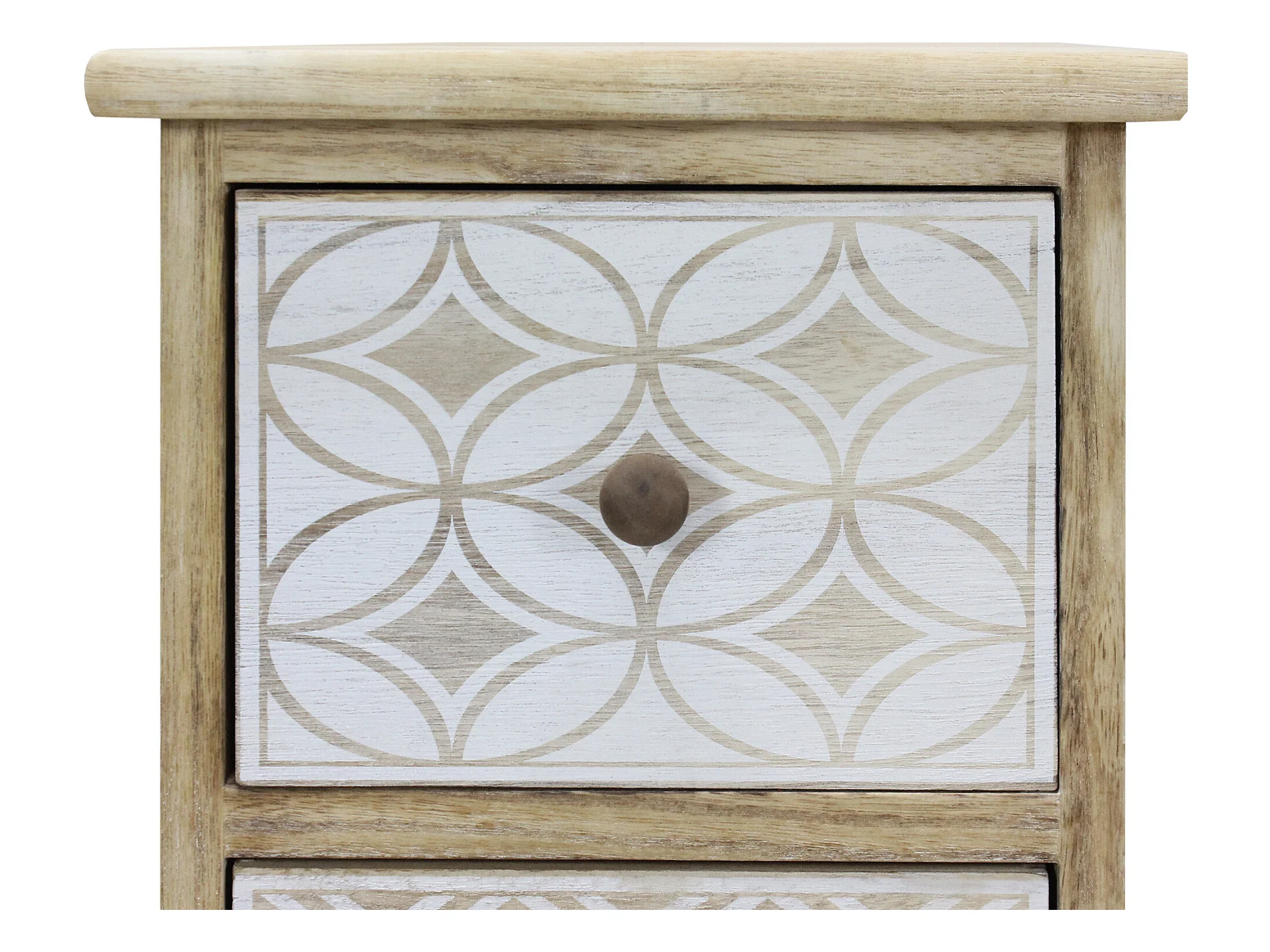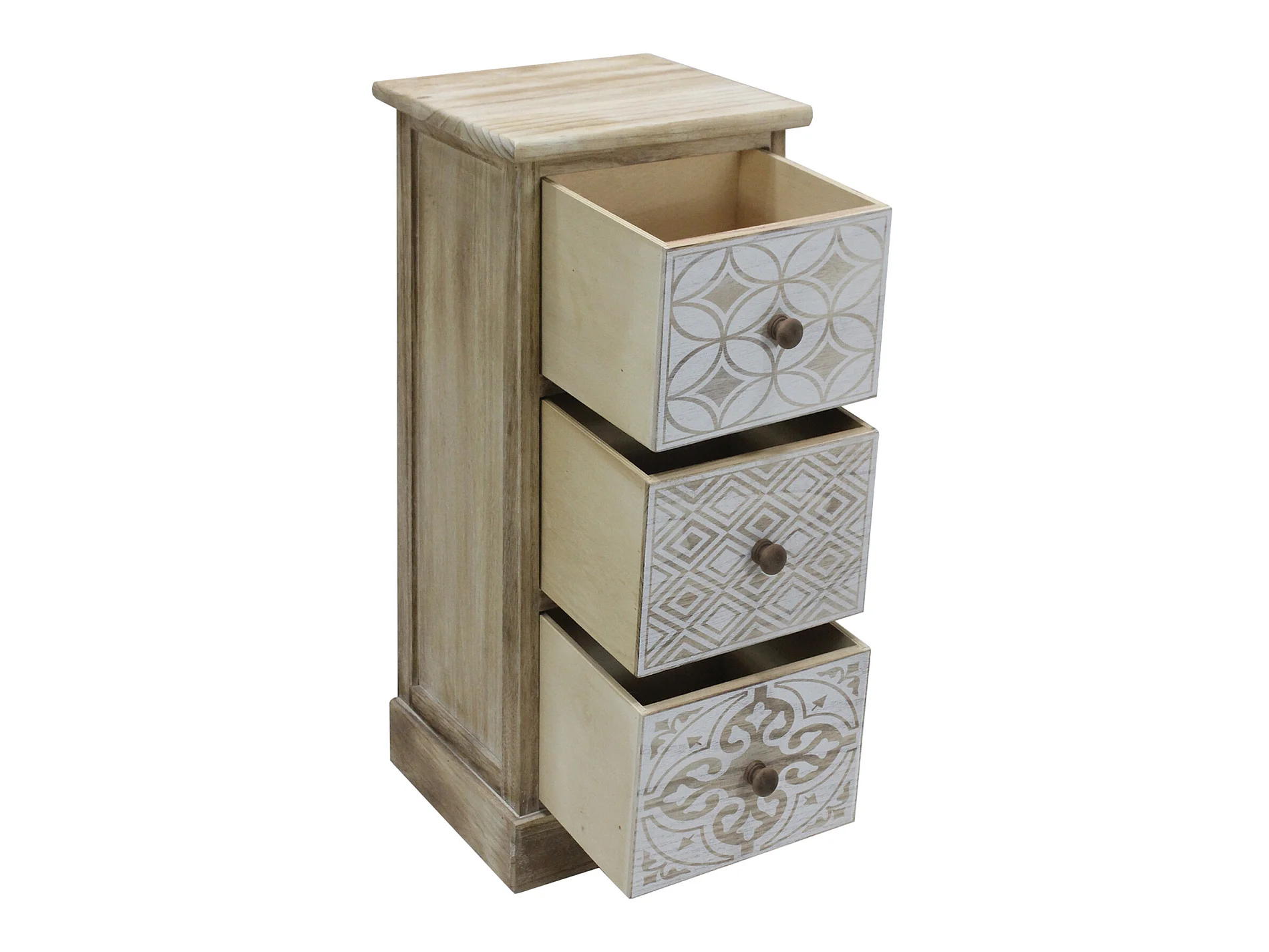 Comodino 3 Cassetti Legno Beige Bianco Retro Salvaspazio 63x29x25