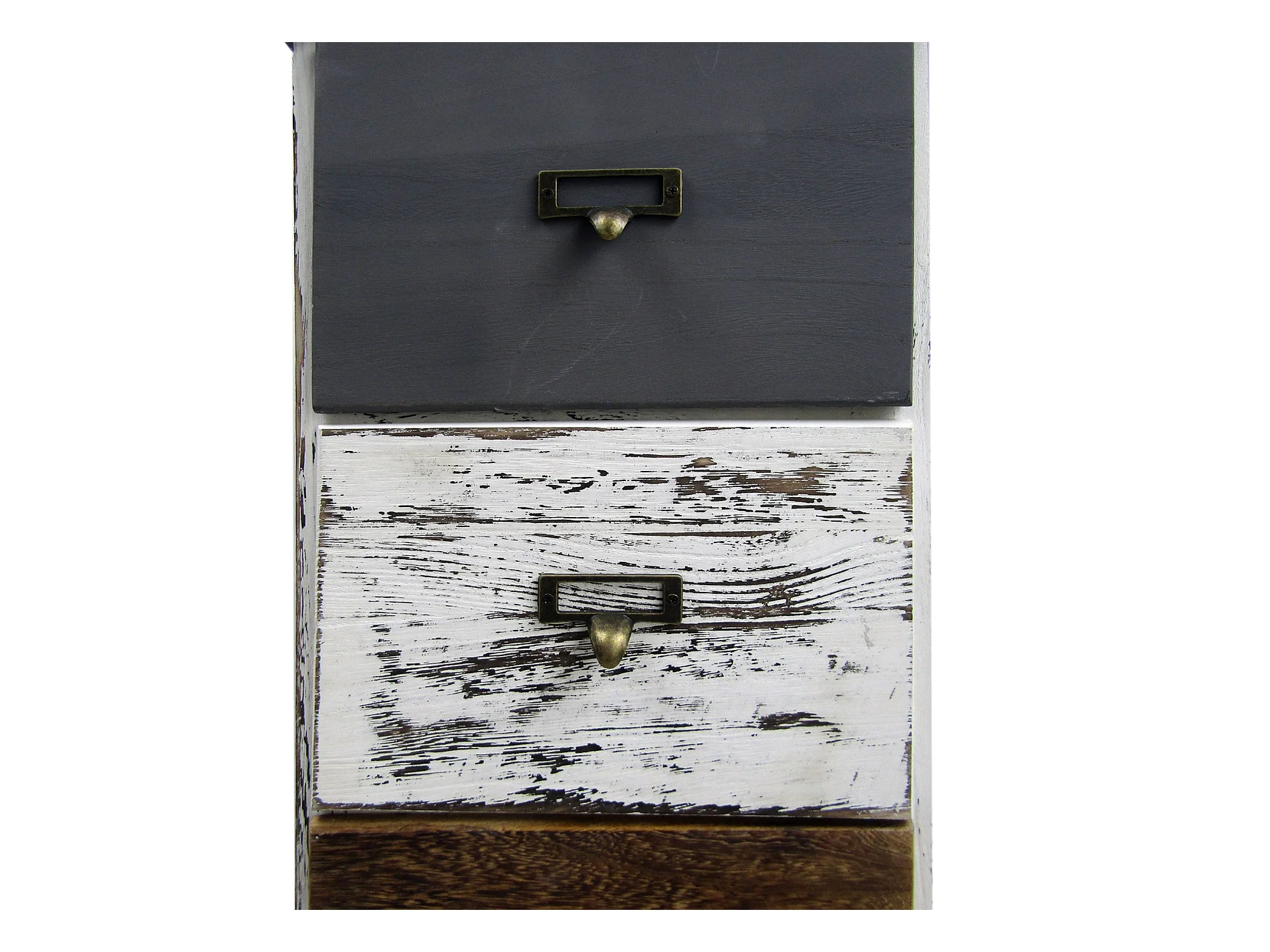 Comodino 3 Cassetti Legno Retro Bianco Grigio Marrone 58x28x28