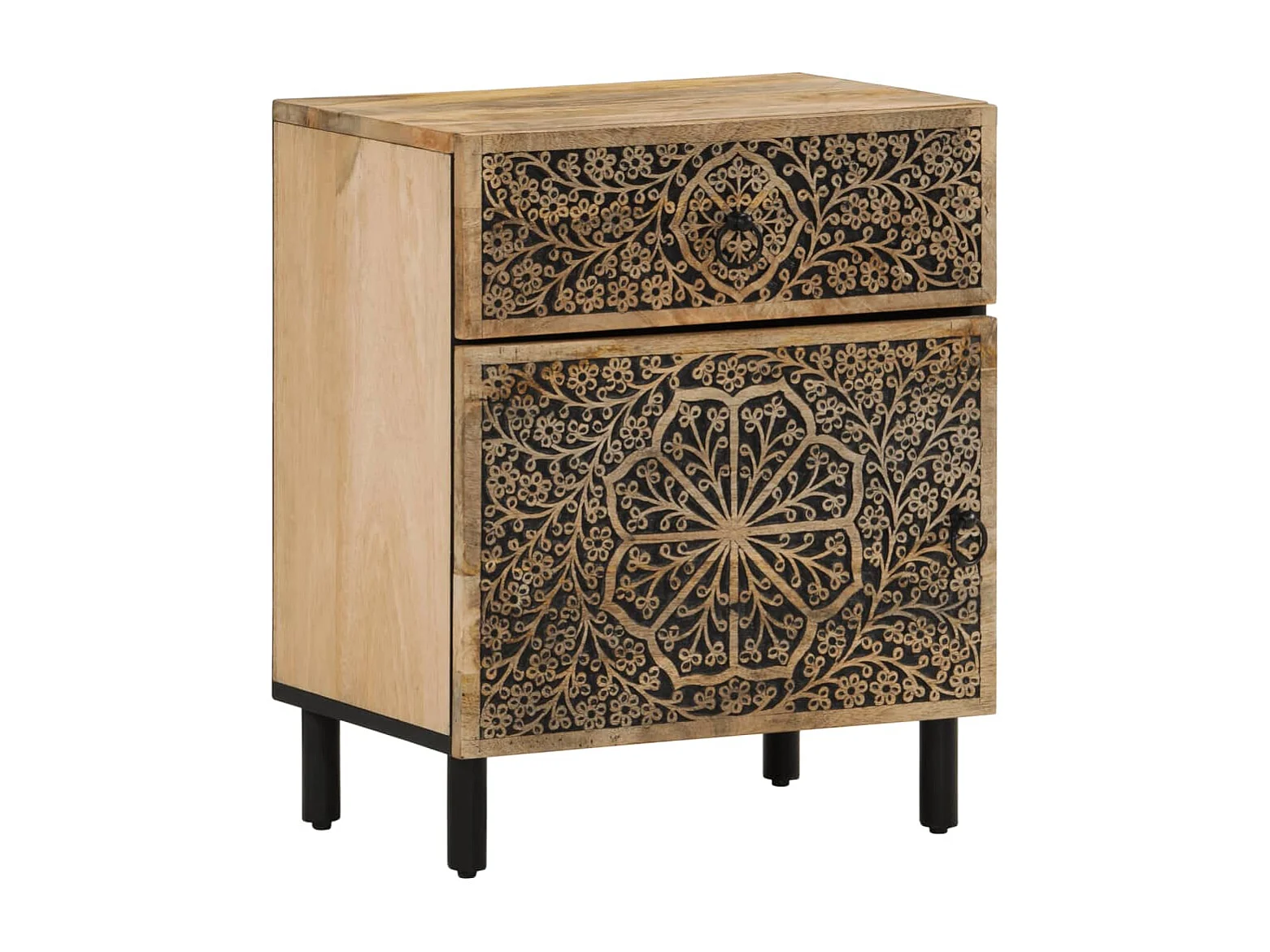 Comodini 2 pz 40x33x46 cm in legno massello di mango
