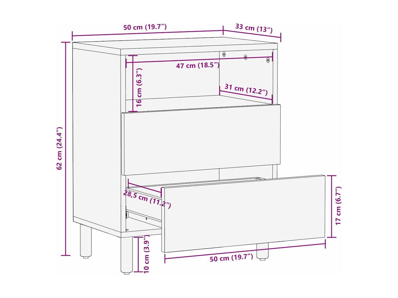 Comodino color miele in legno massello 50 x 33 x 60 cm resistente