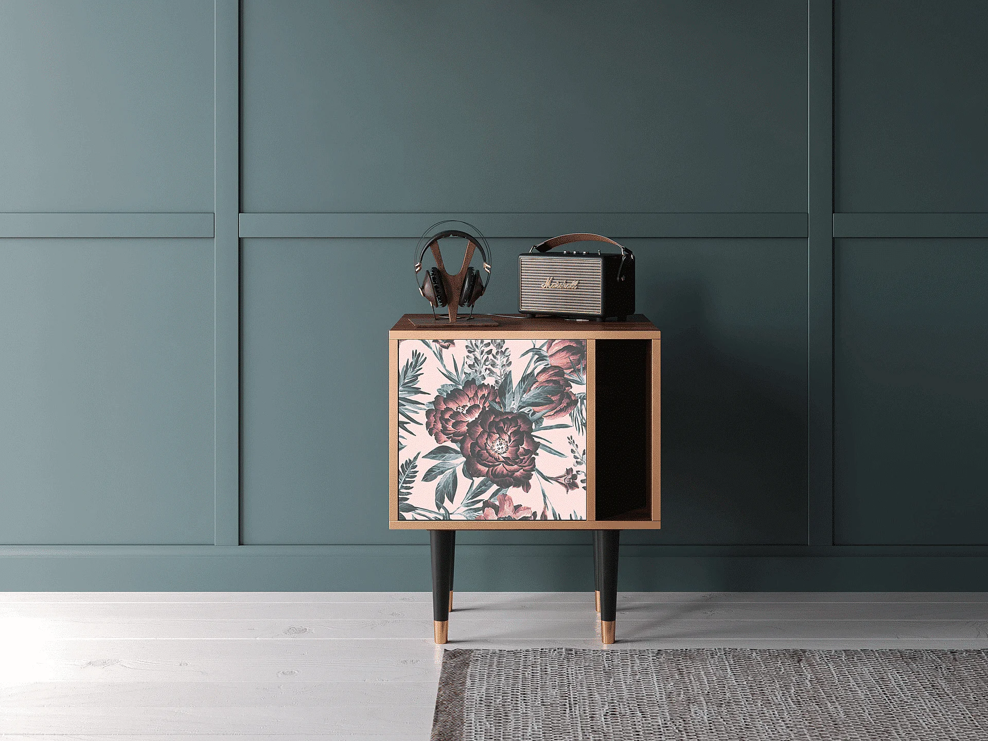 Comodino - 57х69х48 cm - S2 - Peach Peonies, Noce