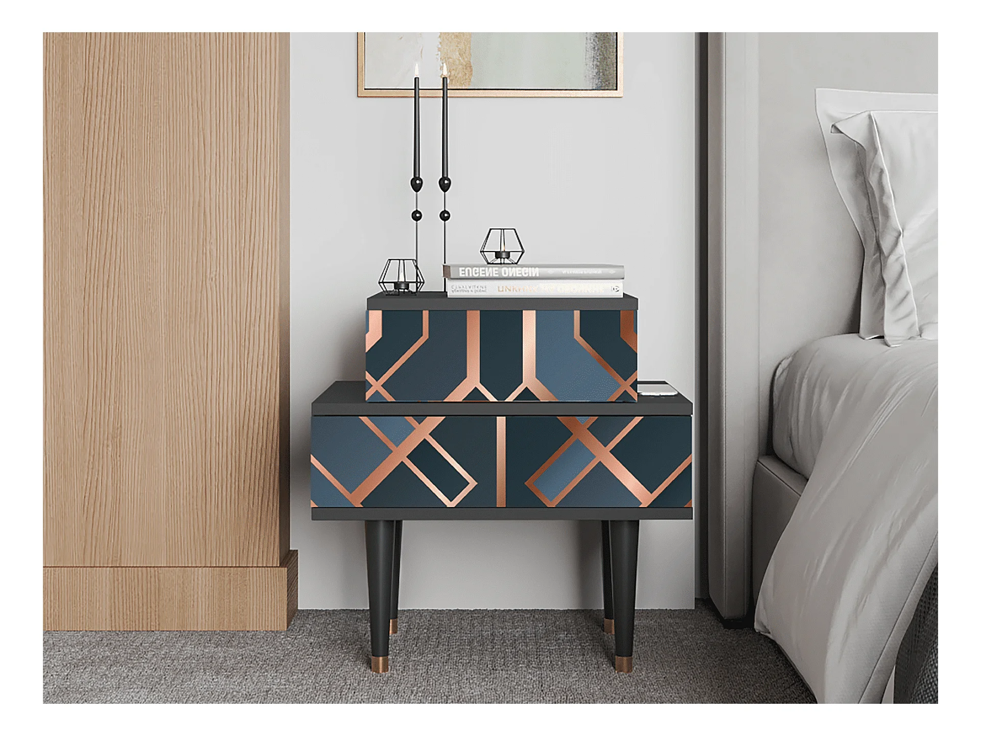 Comodino - 58х58х41 cm - NS1 - Egypt Triangles, Grigio