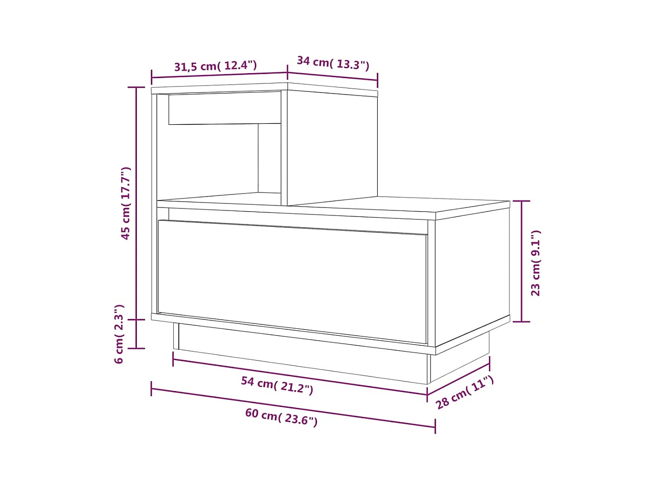 Comodino con luci LED Rovere affumicato 60x35x40 cm
