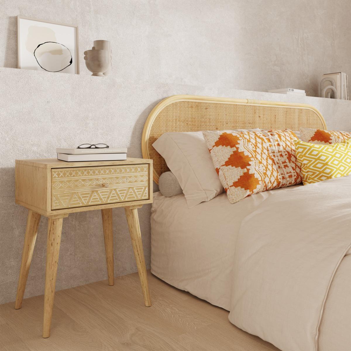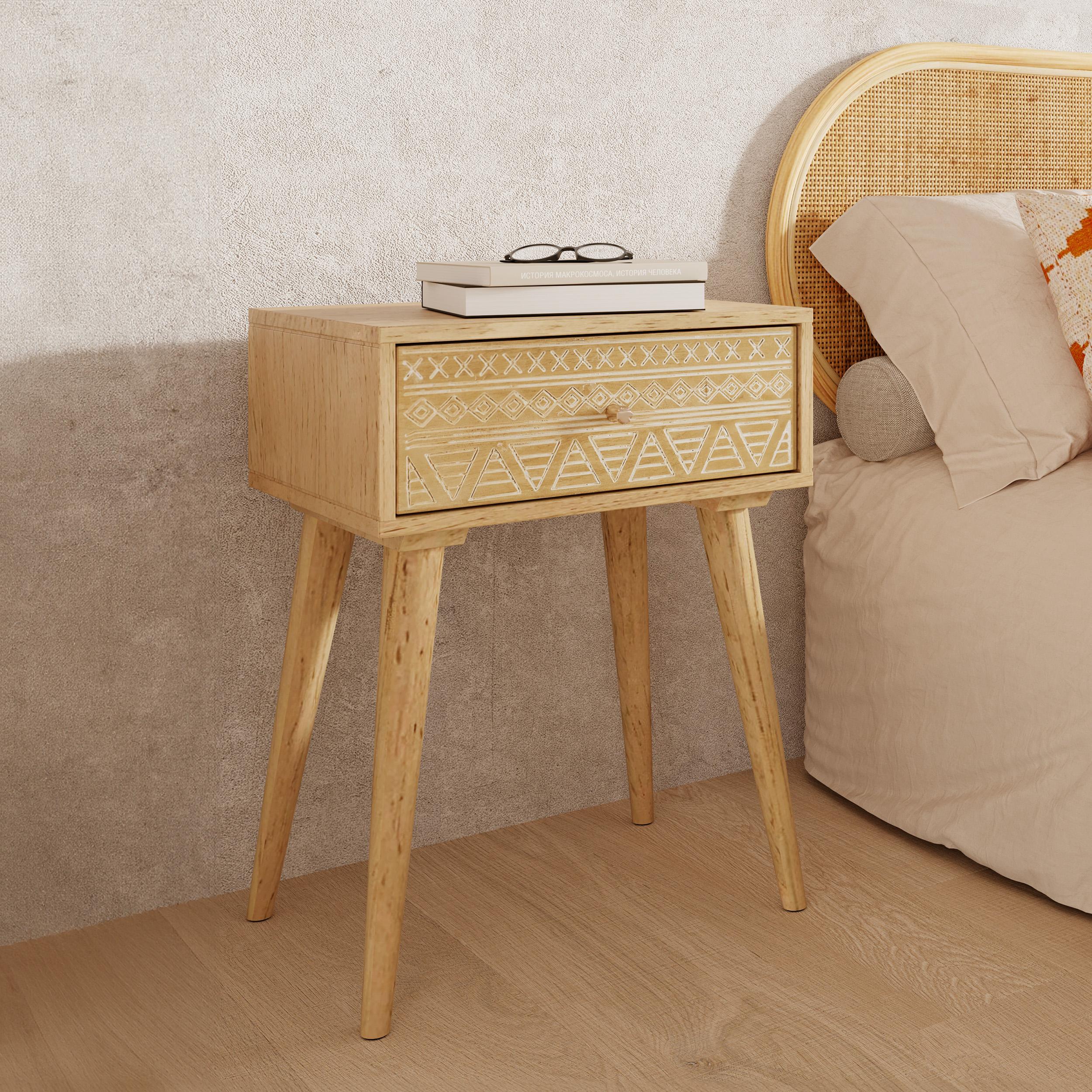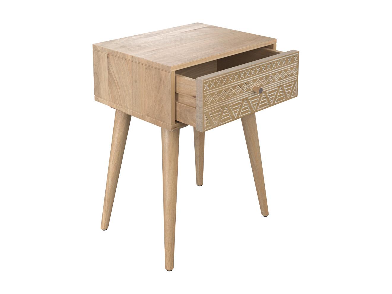 Comodino a 1 cassetto in legno di mango inciso - Tiny