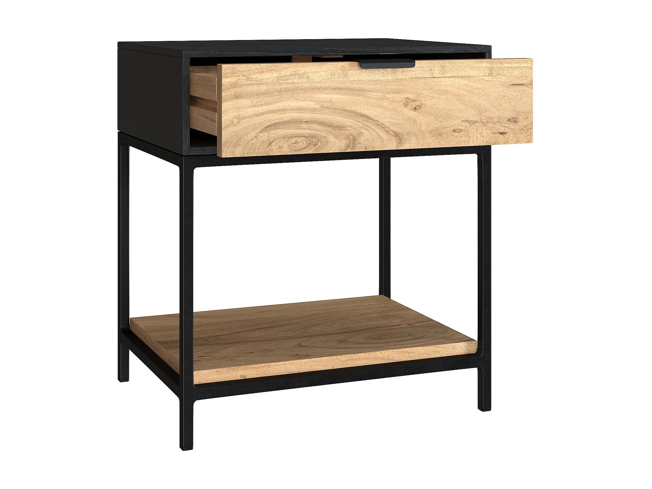Comodino a 1 cassetto in legno d'acacia e metallo nero - Jakson