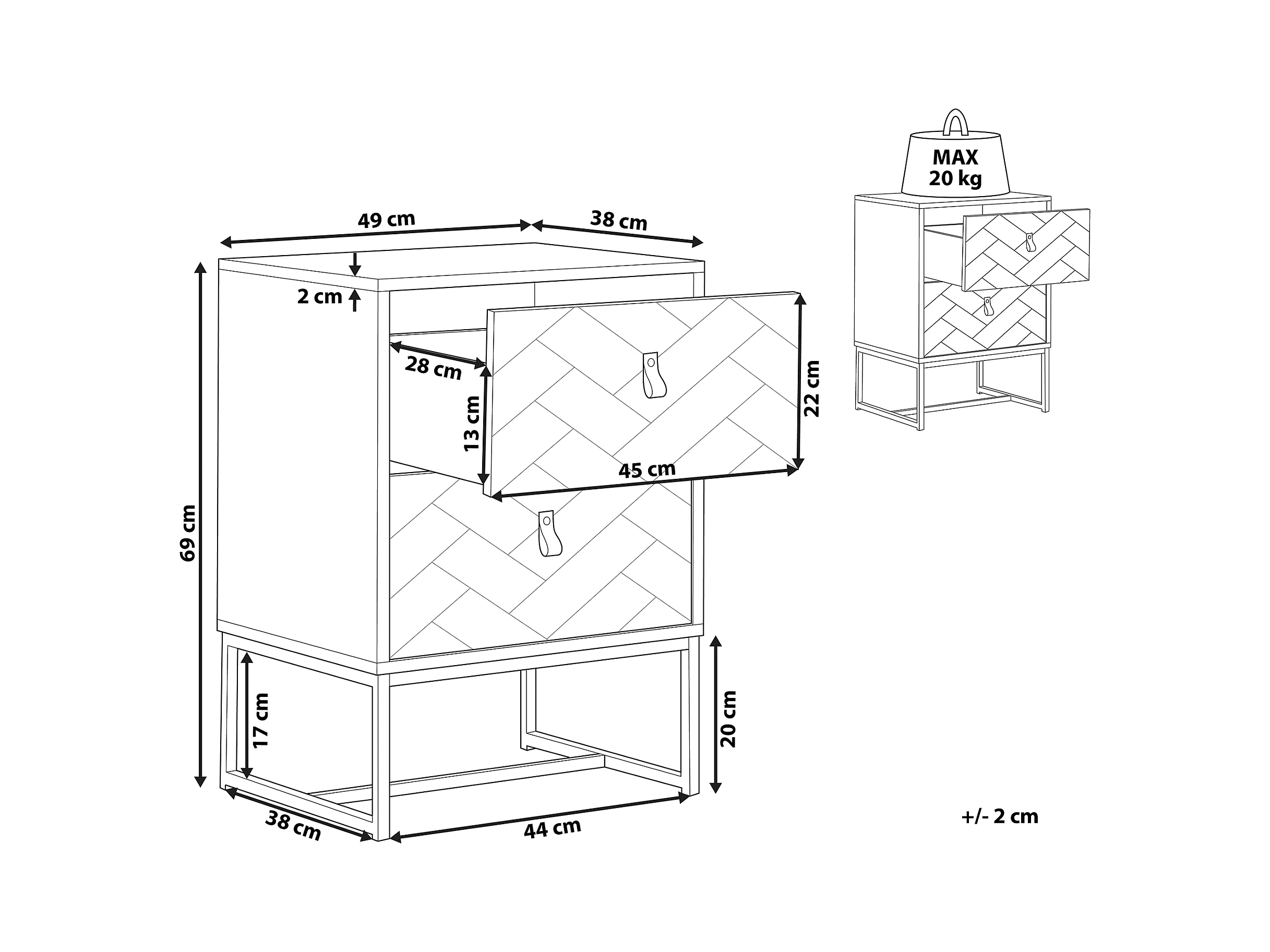 Comodino 2 cassetti NUEVA Marrone chiaro/ Bianco