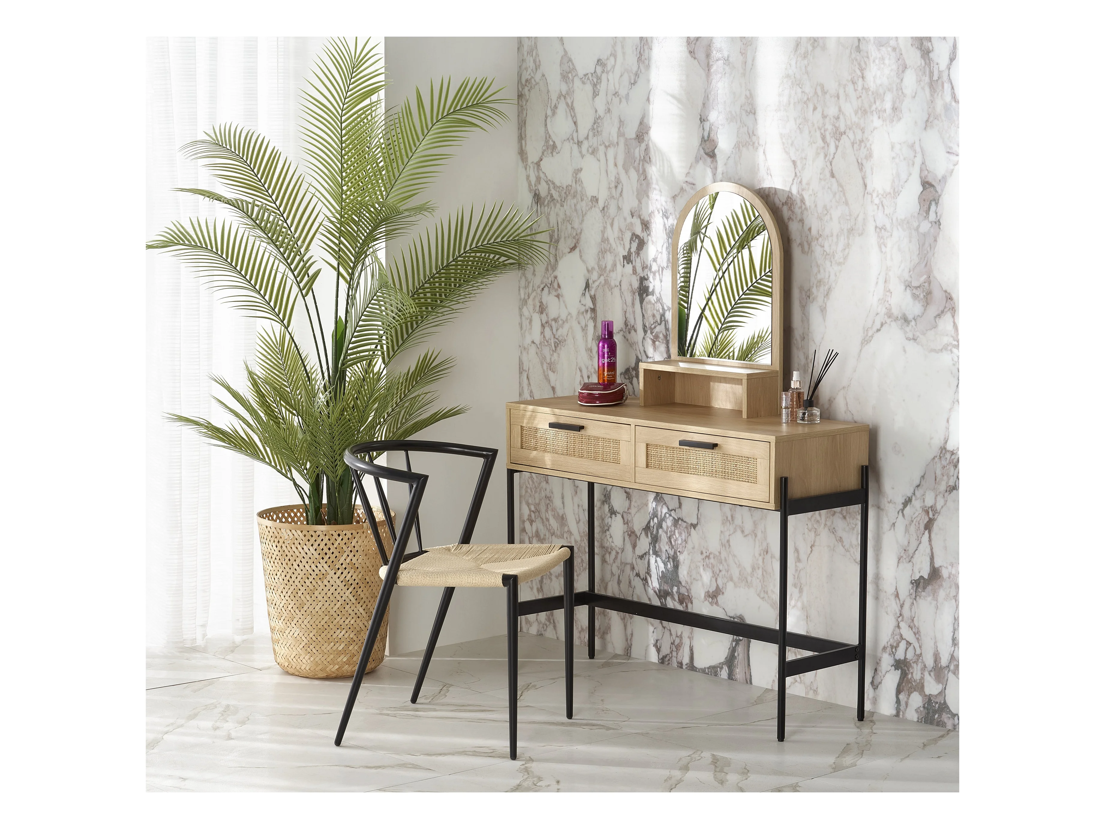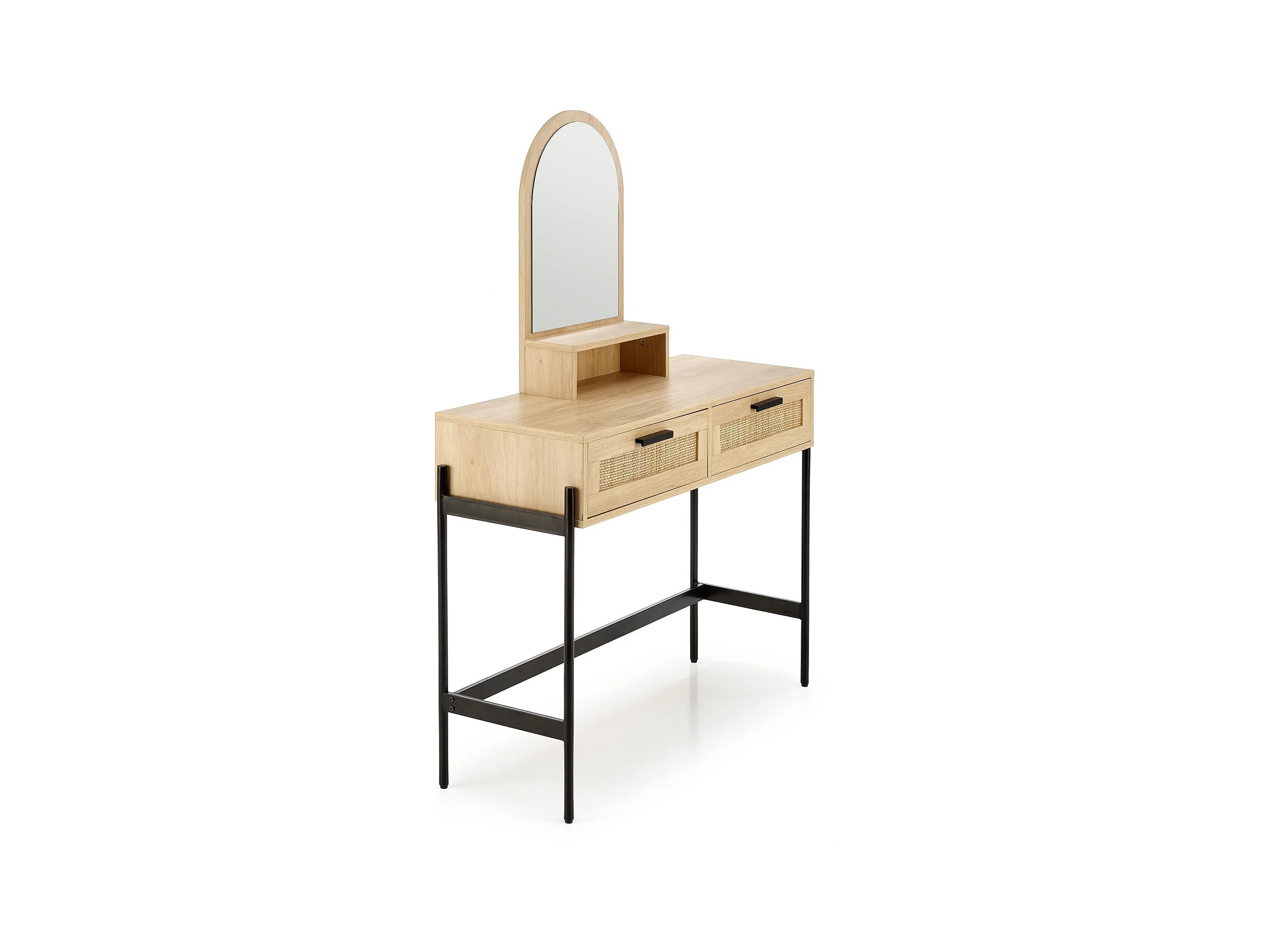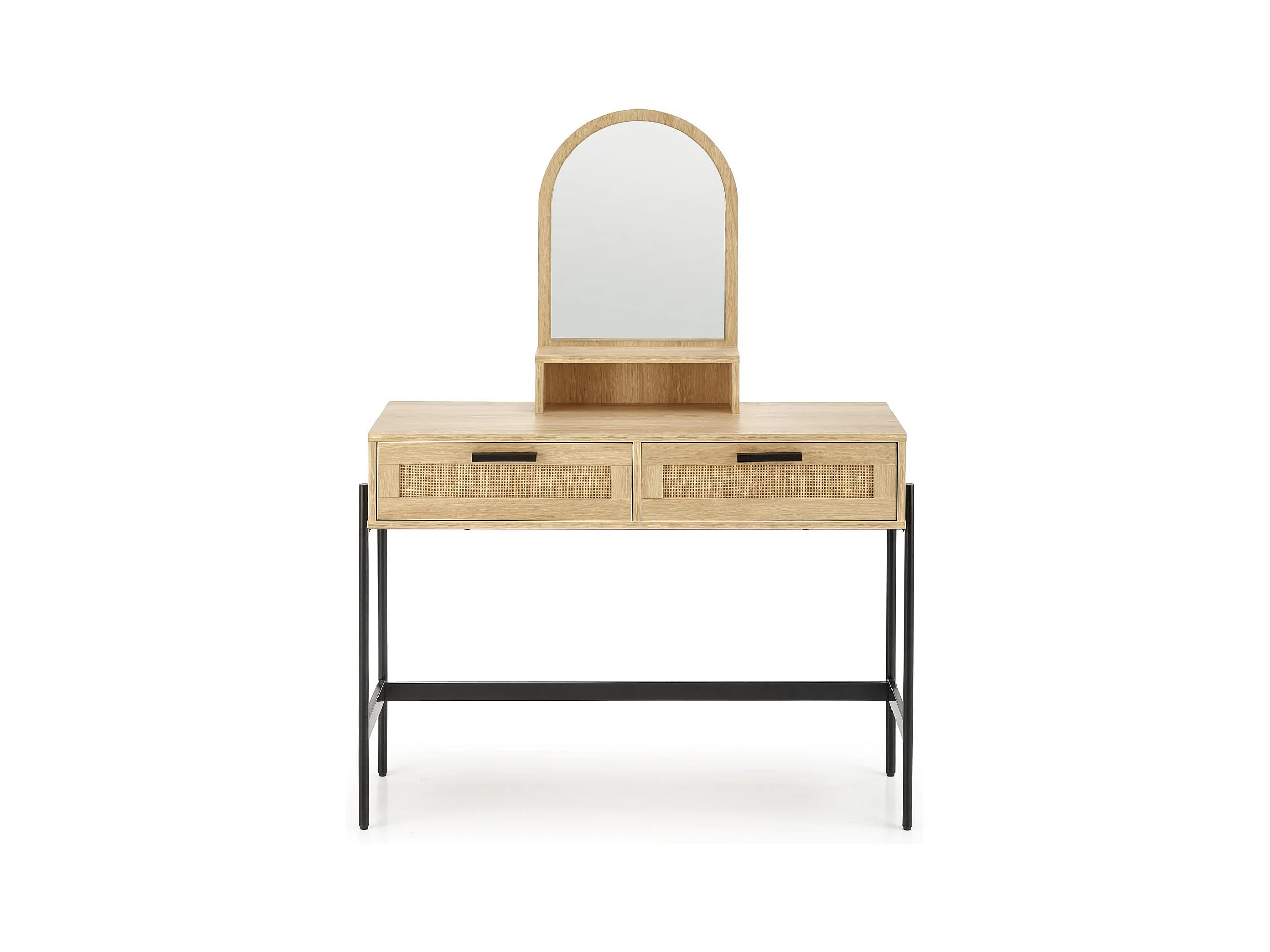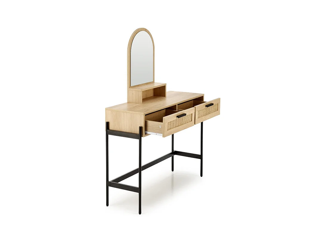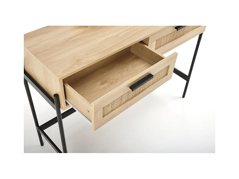 Comodino a 2 cassetti in rattan naturale con impiallacciatura in legno e metallo Ignacio
