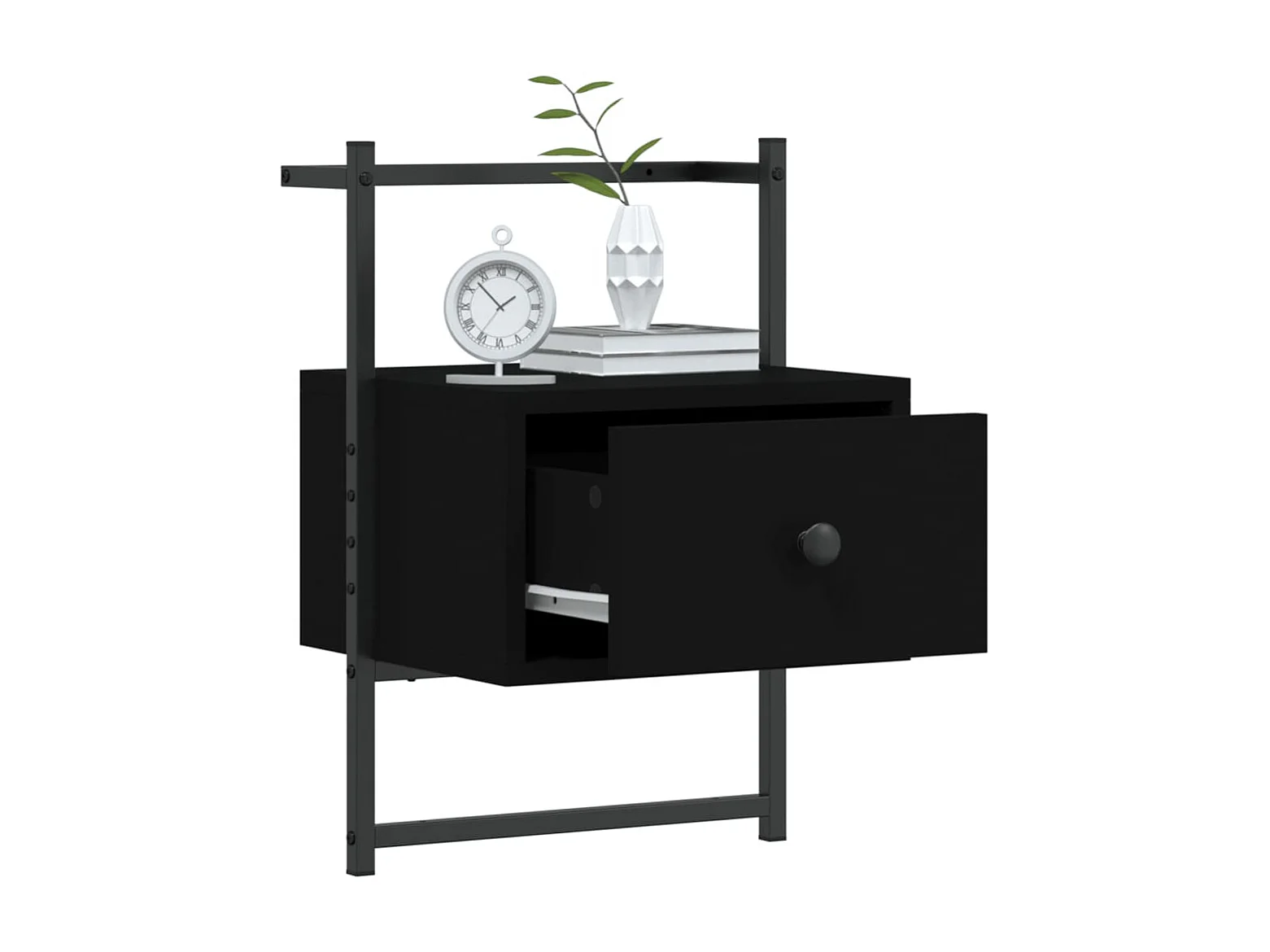 Comodino a Muro Nero 35x30x51 cm Legno Multistrato CFW822283