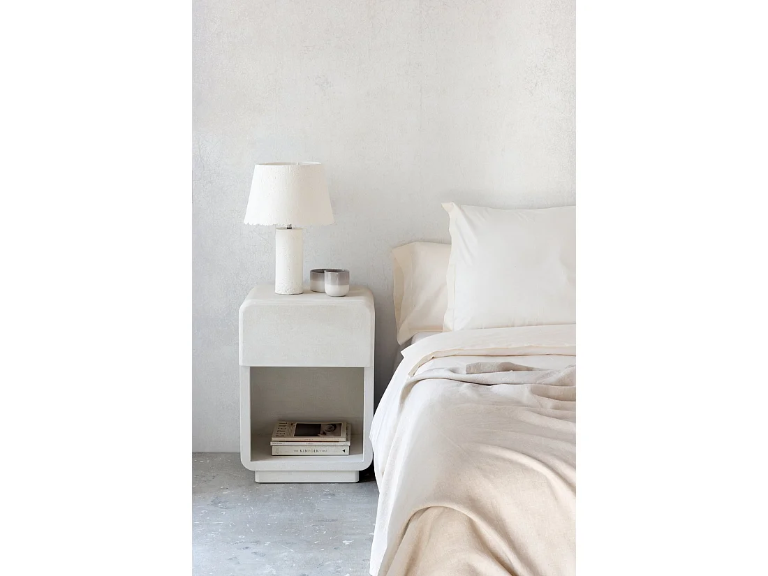 Comodino a un cassetto in poliresina cemento bianco