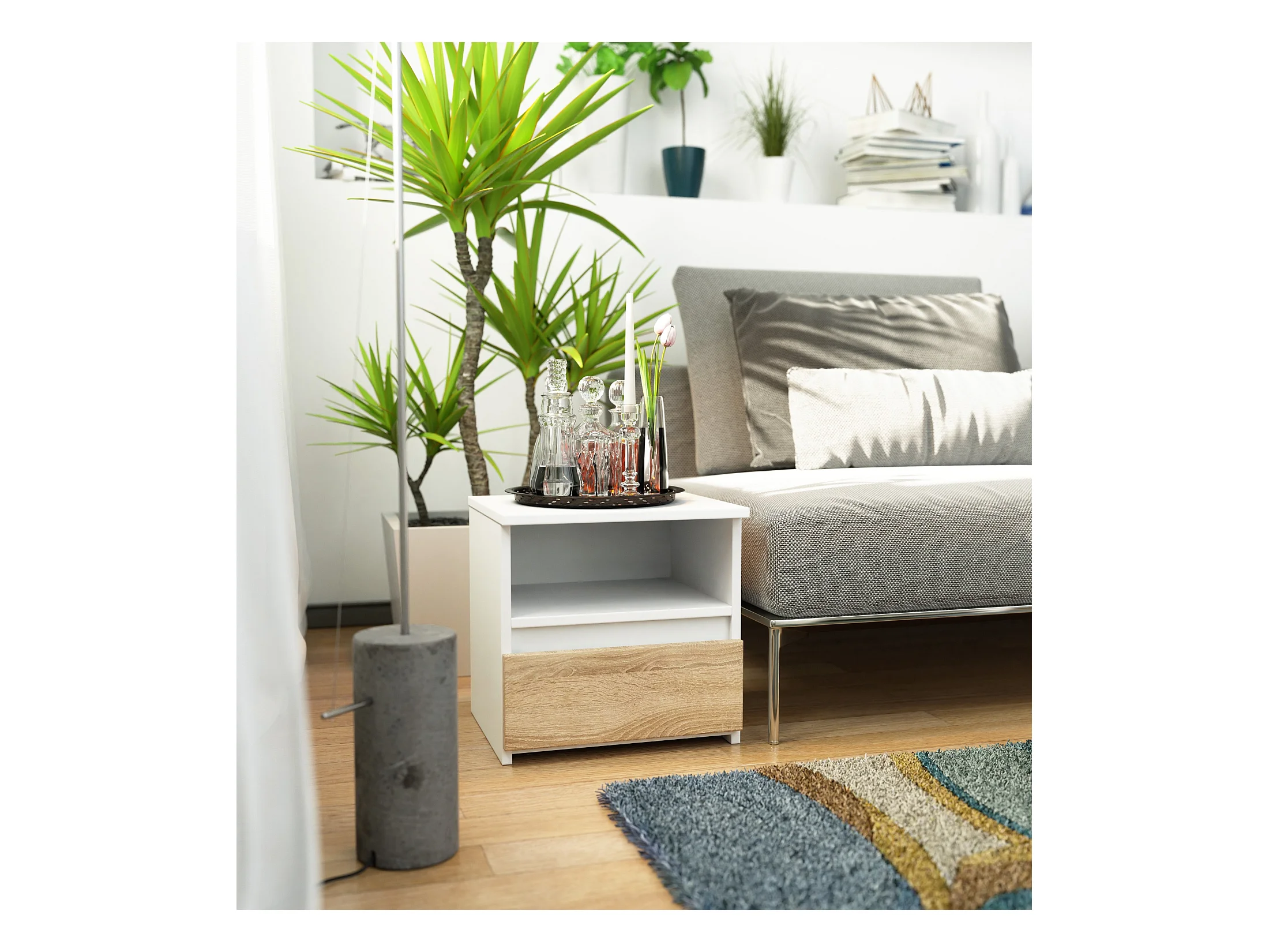 Comodino AKORD CL1 Bianca 40 cm 1 cassetto inserto frontale Sonoma Quercia 40x35x40 cm