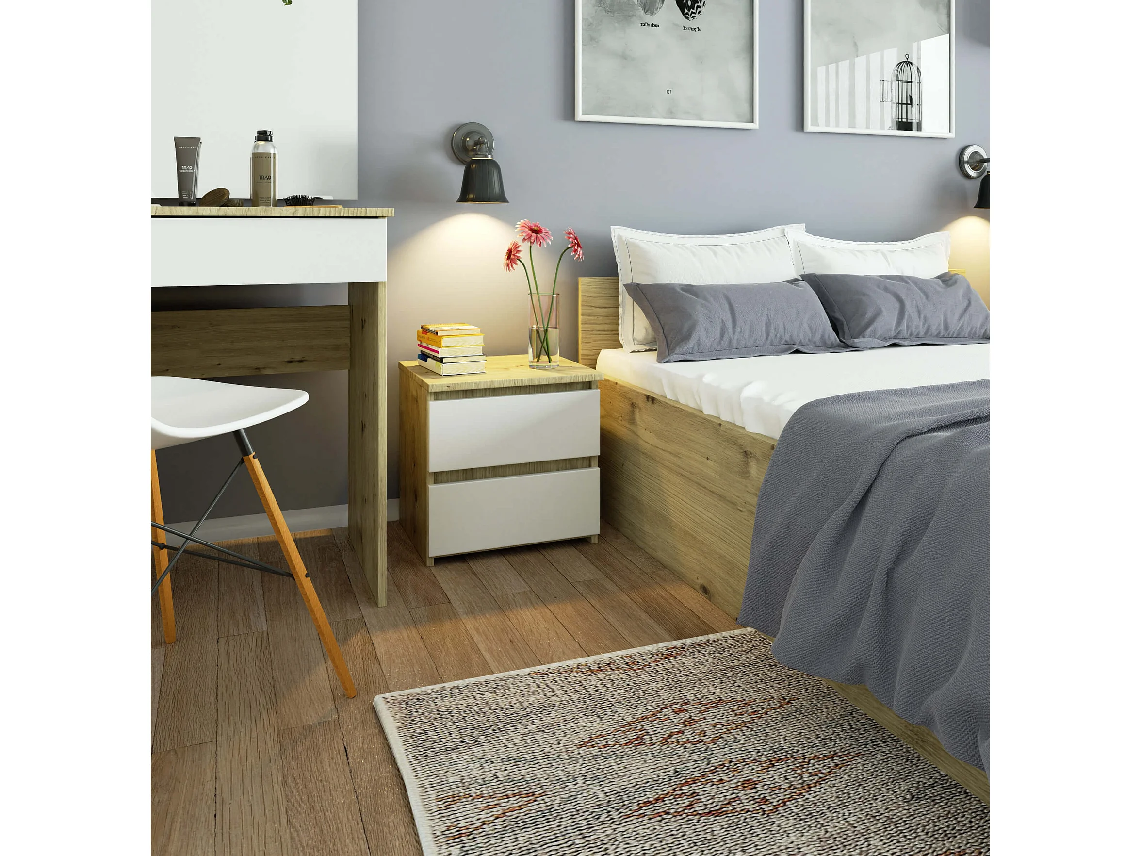 Comodino AKORD CL2 Quercia Artisan 40 cm 2 cassetti inserto frontale Bianco 40x35x40 cm