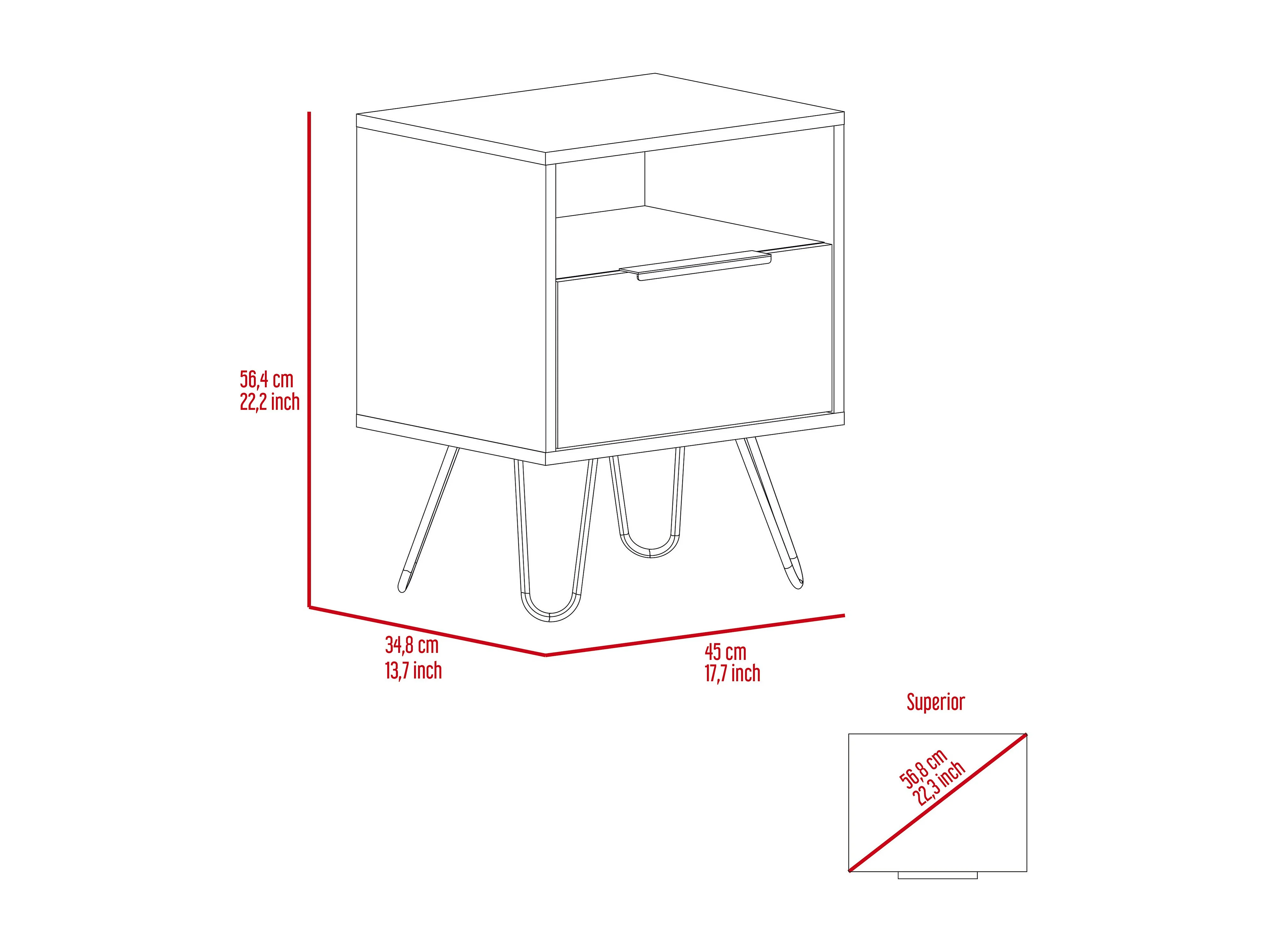 ASTER T1 - Comodino con 2 cassetti - 59x40x32 cm - Comodino - Stile scandinavo