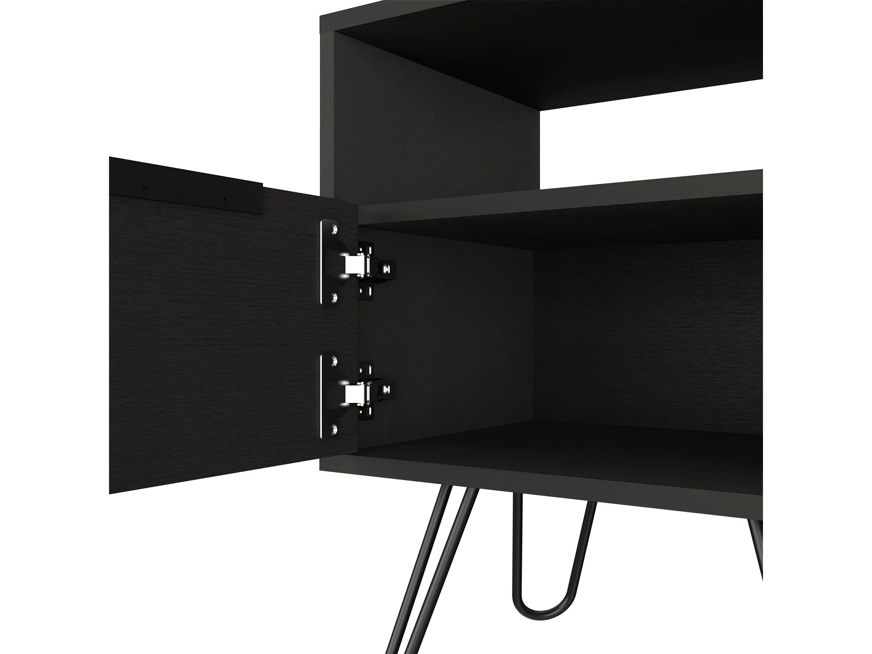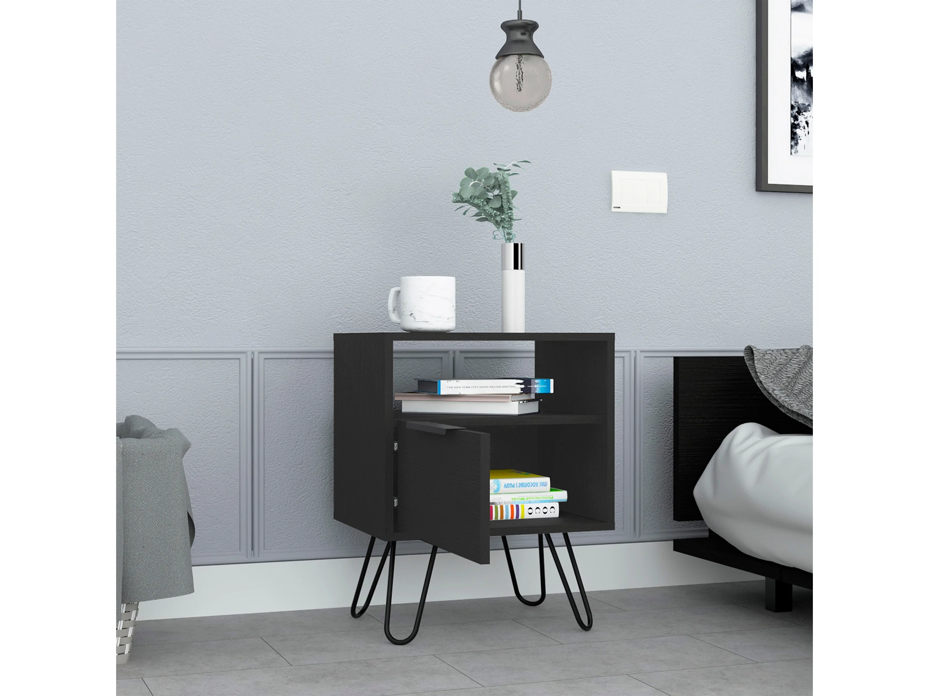 Comodino Augusta in melaminico con 2 ripiani e 1 mobile inferiore, nero, 56.4 cm X 45 cm X 34.8 cm