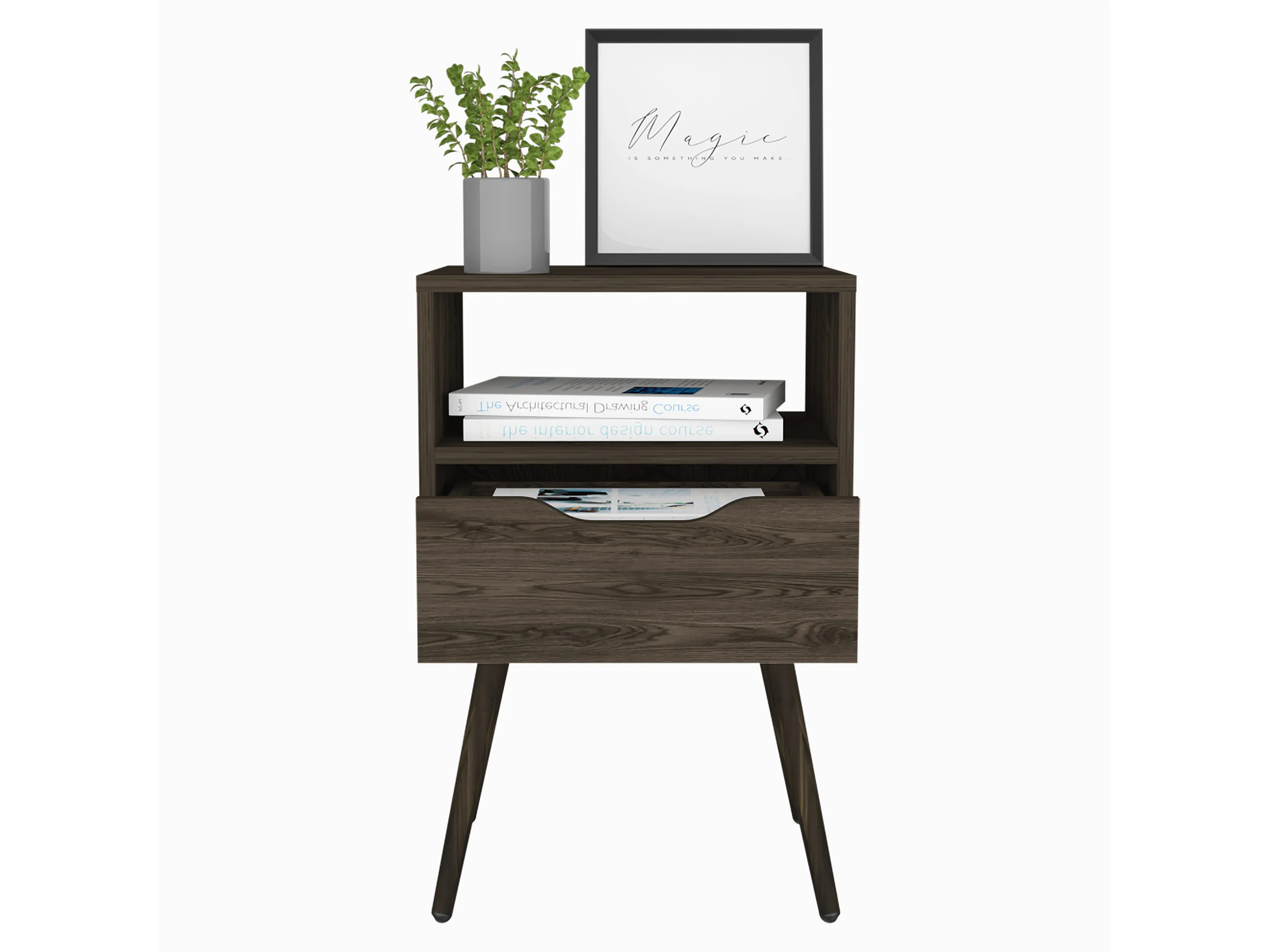 Comodino Kaia Z, con un cassetto 41,2CM L X 36,3CM P X 70CM L X 70CM H Nero / Miele