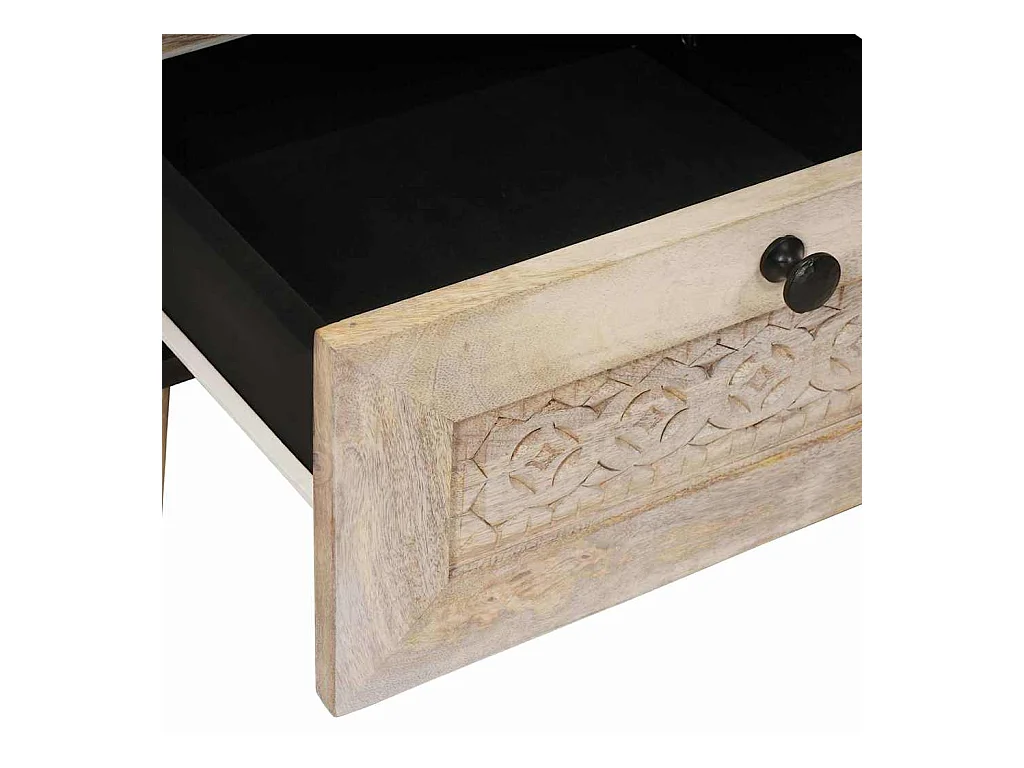 Comodino beige 50 x 33 x 60 cm in legno massello di mango