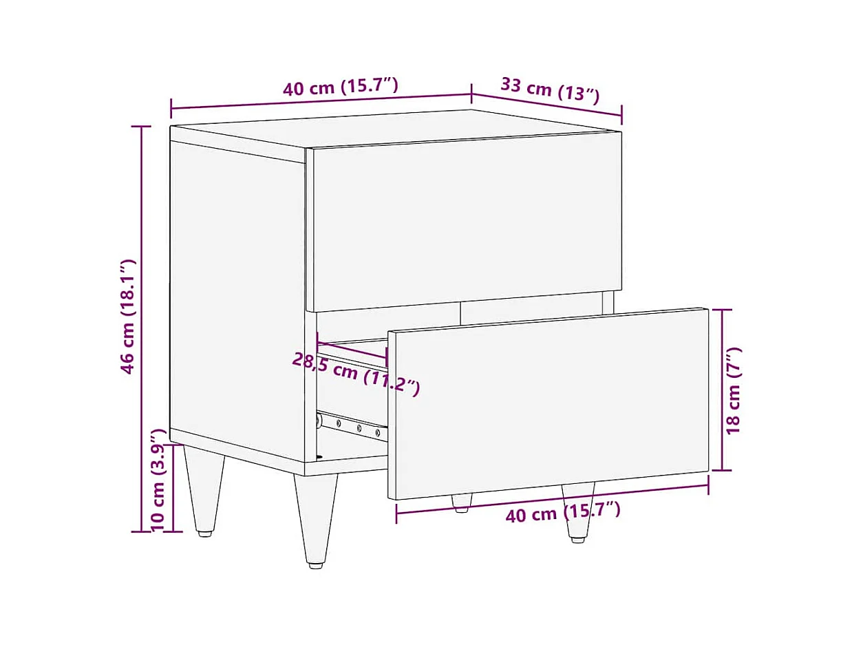 Comodino con cassetto 2 pezzi Beige 40 x 33 x 46 cm