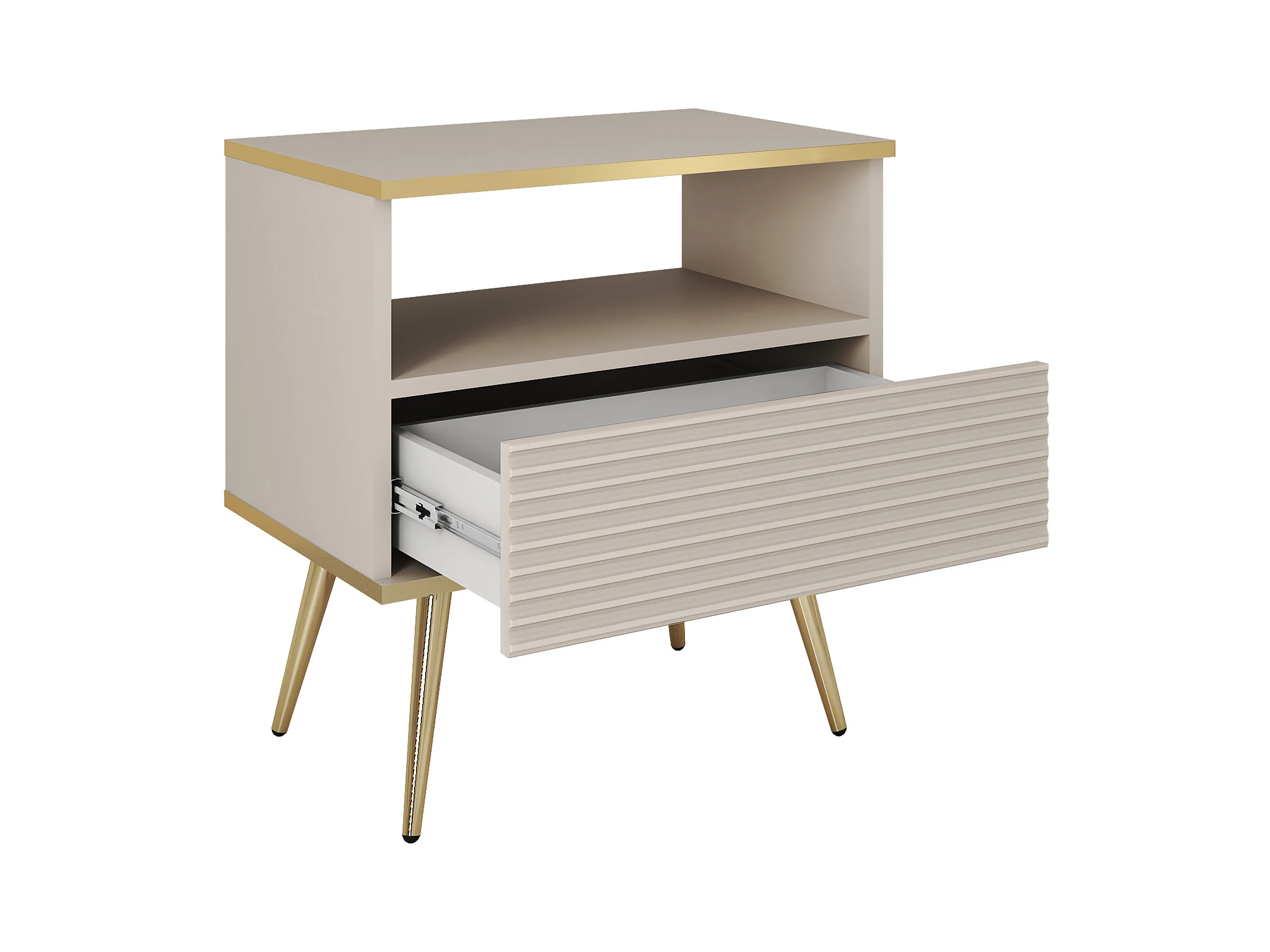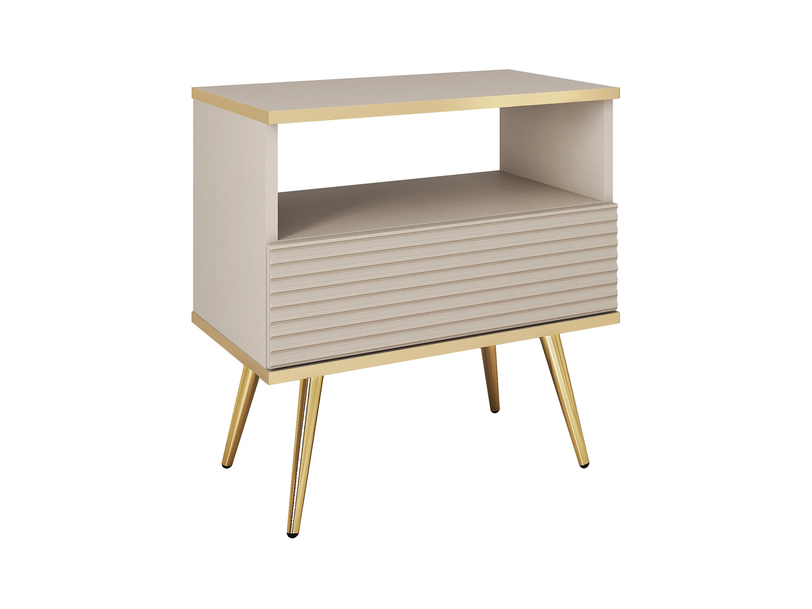 Comodino beige glamour con gambe dorate, 54 x 59 x 39