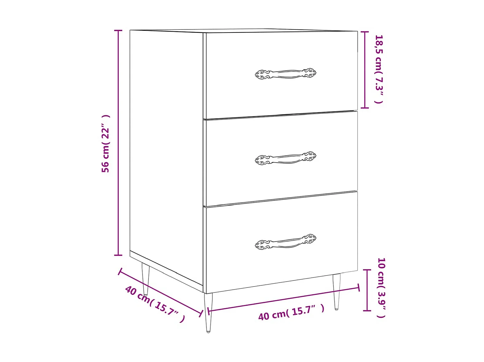 Comodino bianco 40x40x66 cm in derivati del legno