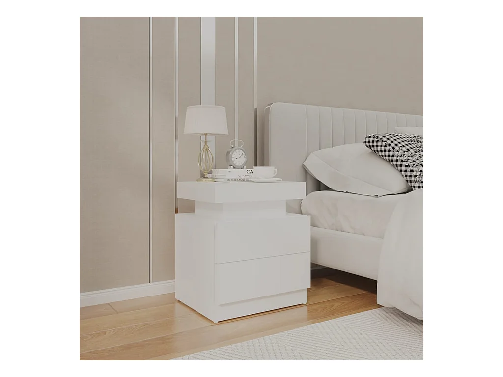 Comodini luci LED 2 pz bianco lucido 60x35x40 cm