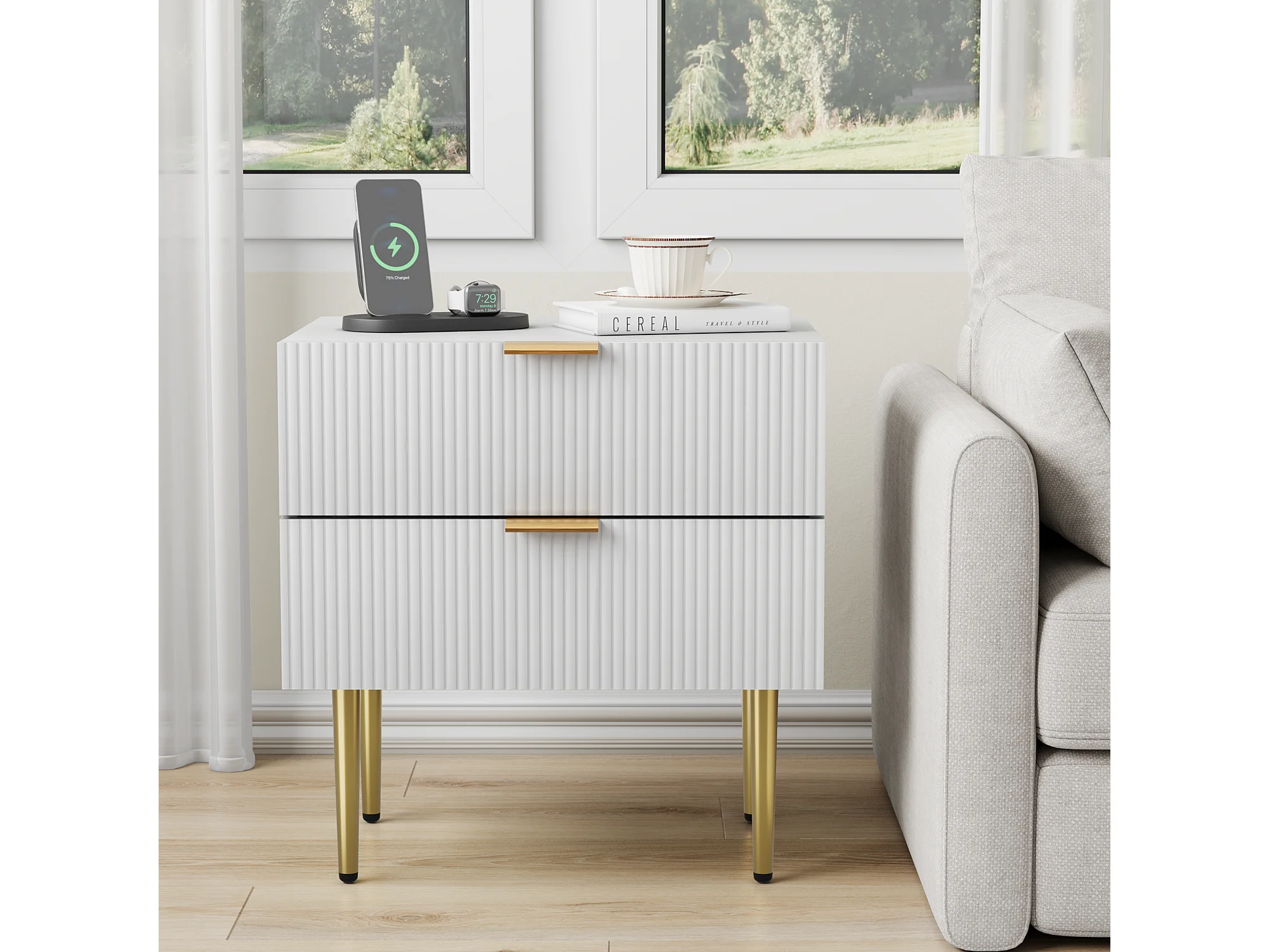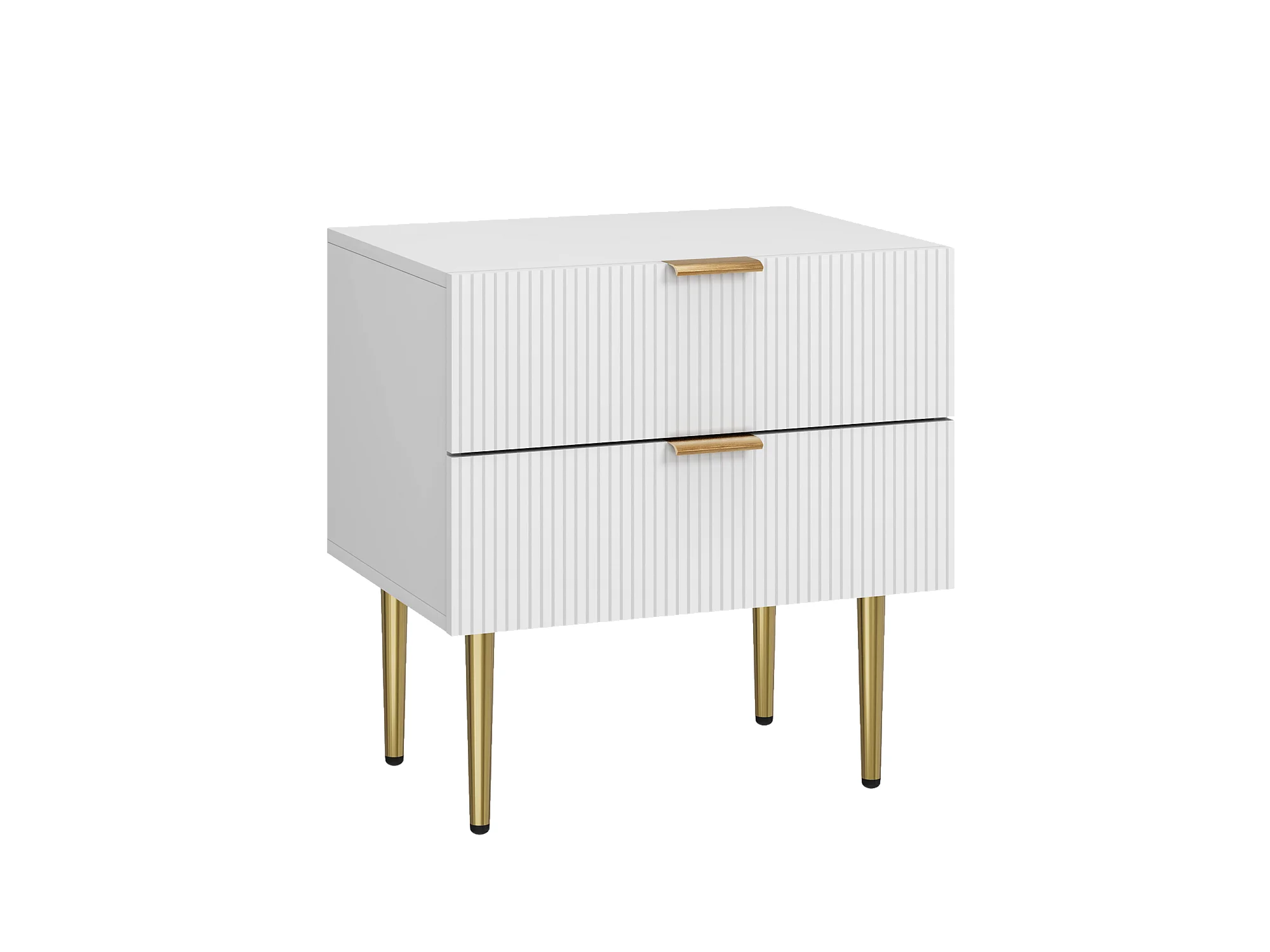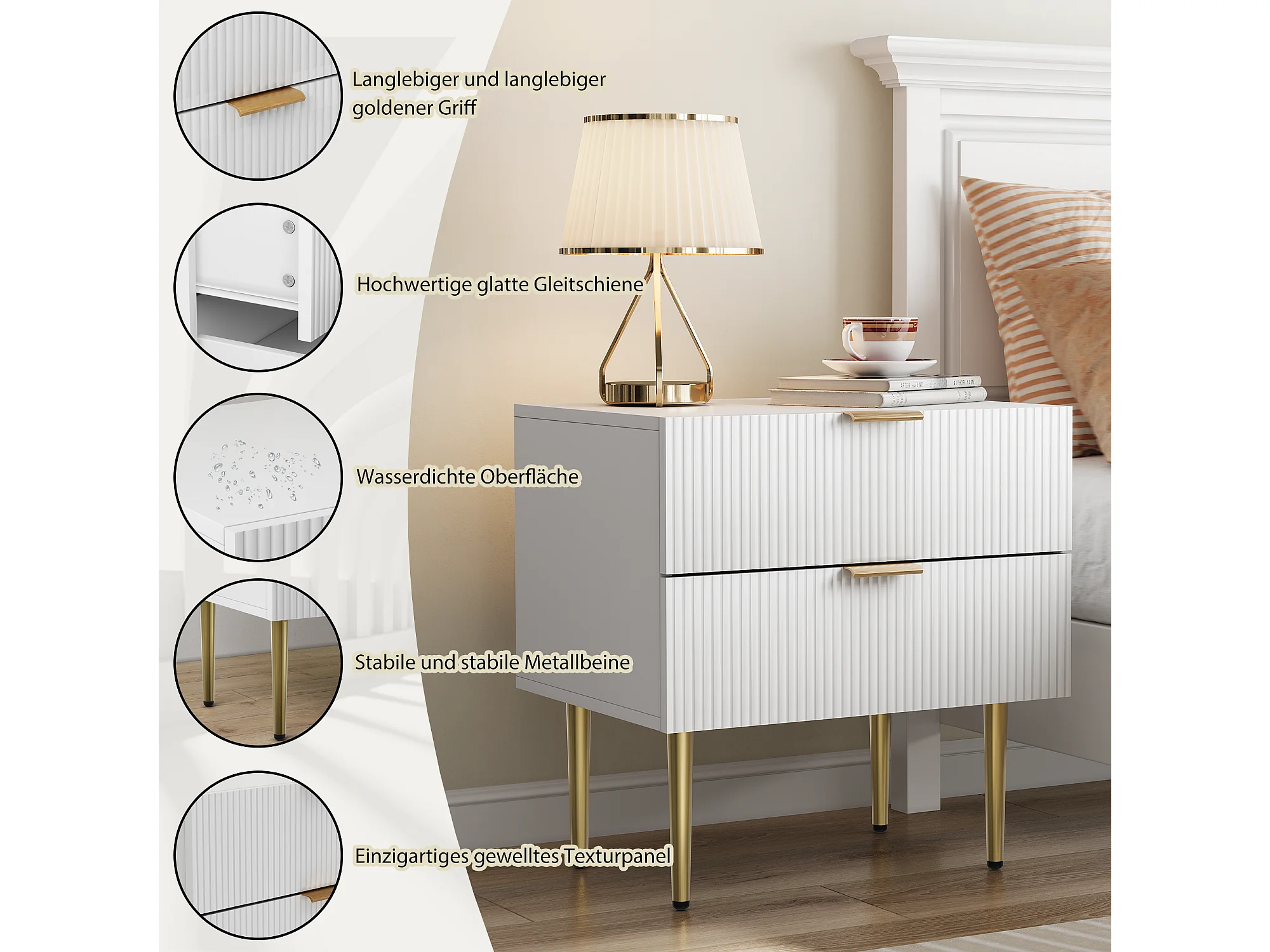Comodino bianco con motivo a onde e 2 cassetti, comodino per camera da letto, gambe in metallo, design moderno (53x41,3x52,5 cm)