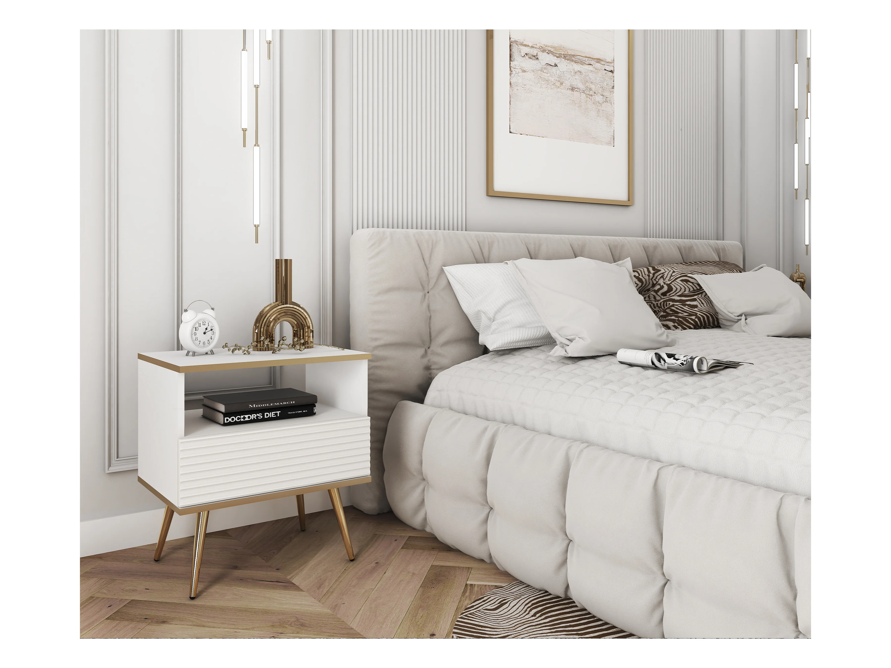 Comodino moderno bianco con un cassetto e 2 ripiani