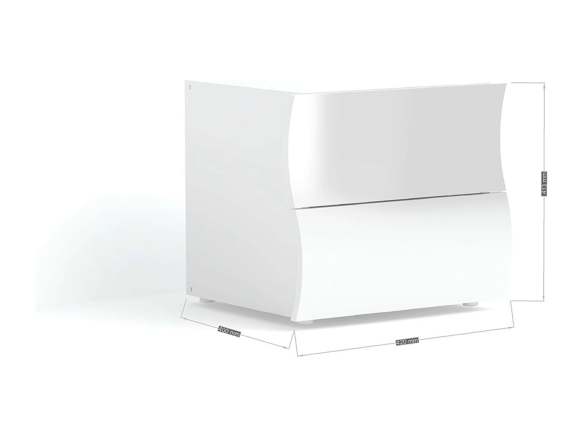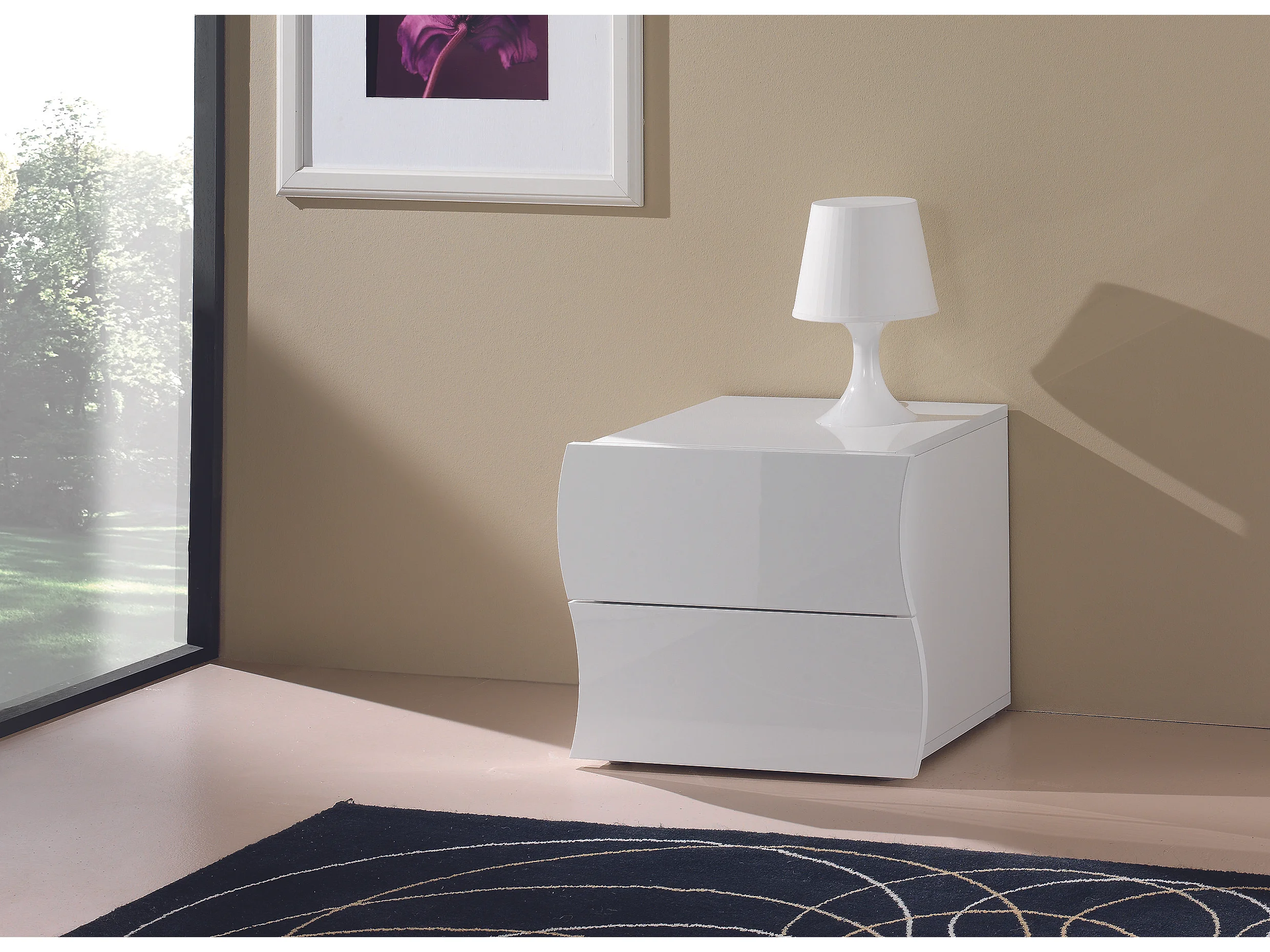 Comodino camera da letto 2 cassetti bianco lucido Onda Smart