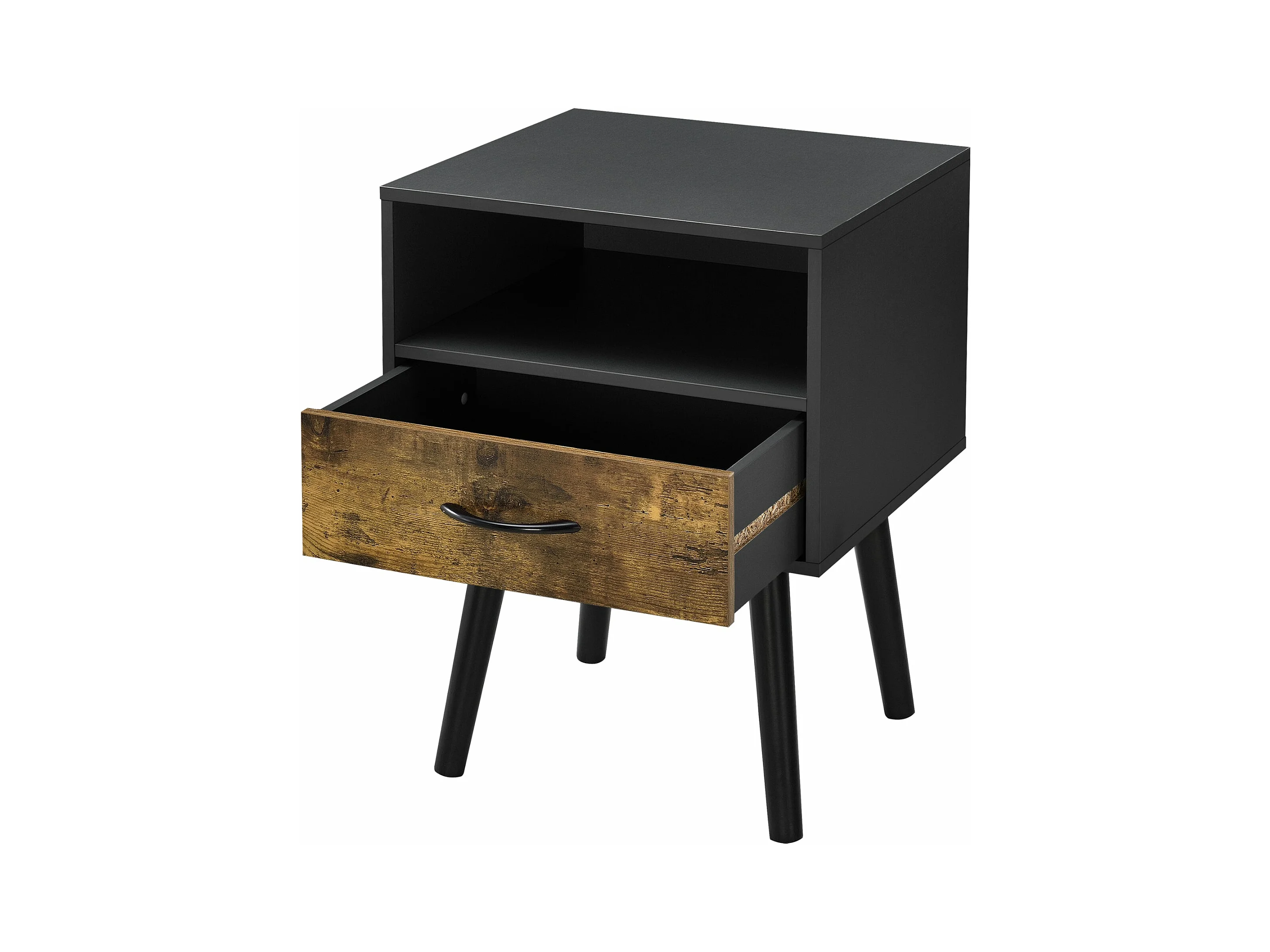 Tavolino con cassetto comodino comodino cassettiera contenitore gambe tavolo in pino 60 cm nero 03_0003143